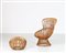 ALBINI FRANCO (1905 - 1977) Wicker archair with pouff, mod. Margherita, for Bonacina, 50’s.