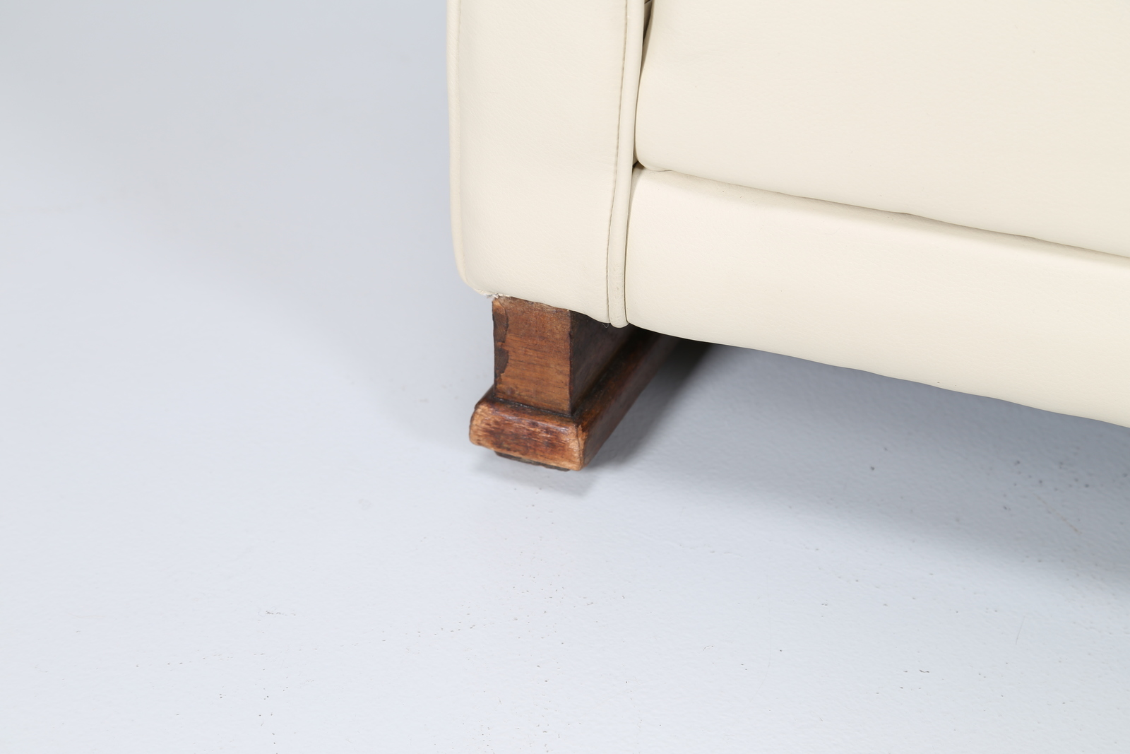 MANIFATTURA ITALIANA Pair of walnut and sky armchairs and pouff, 40’s.