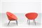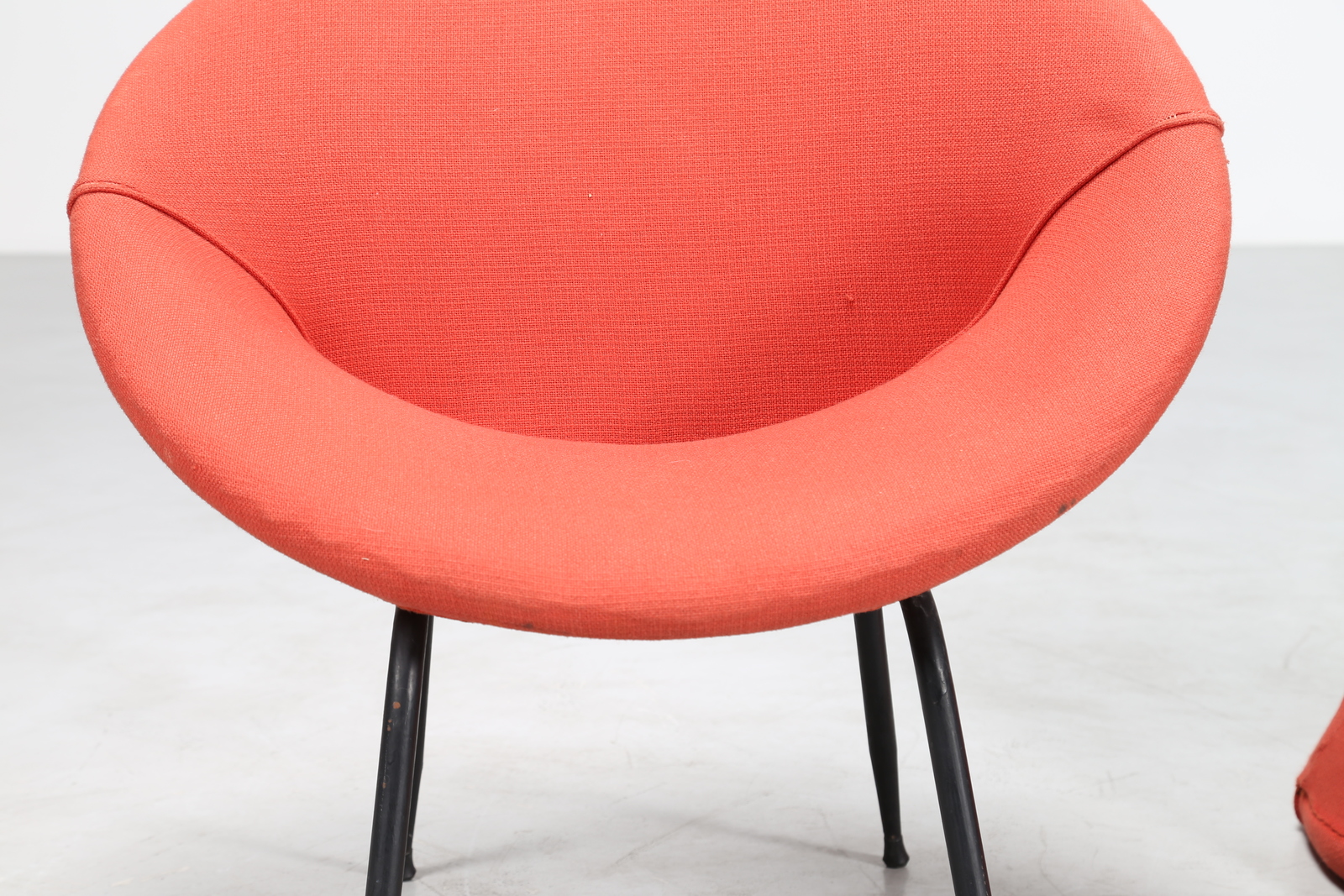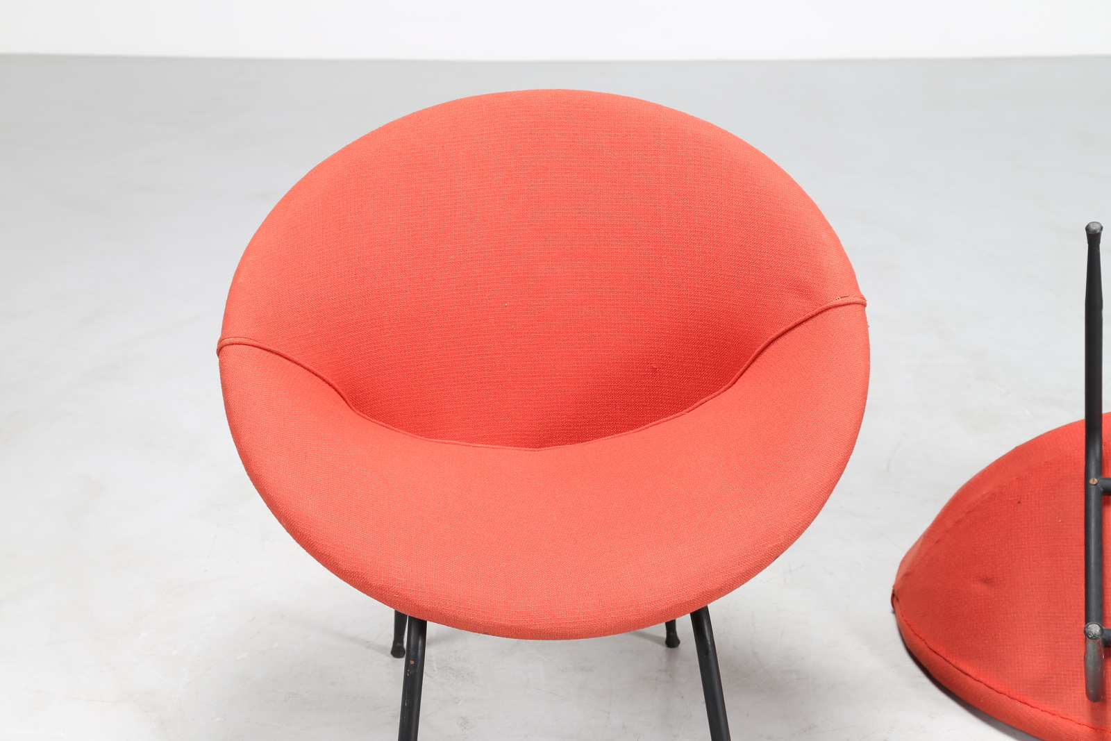 MANIFATTURA ITALIANA Pair of sphere armchairs with iron structure and filled sitting, 50’s.
