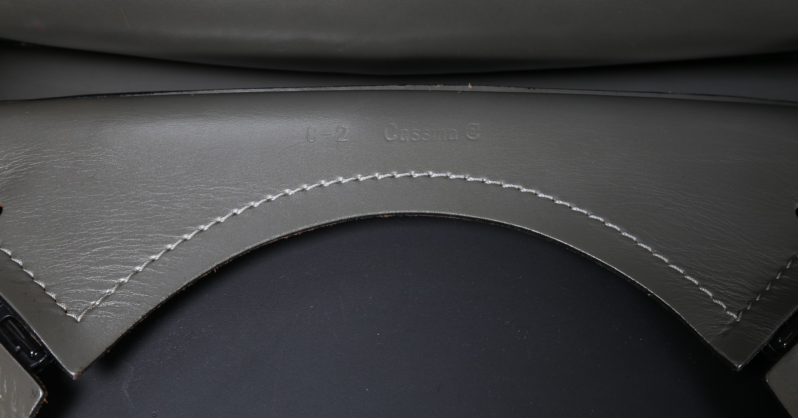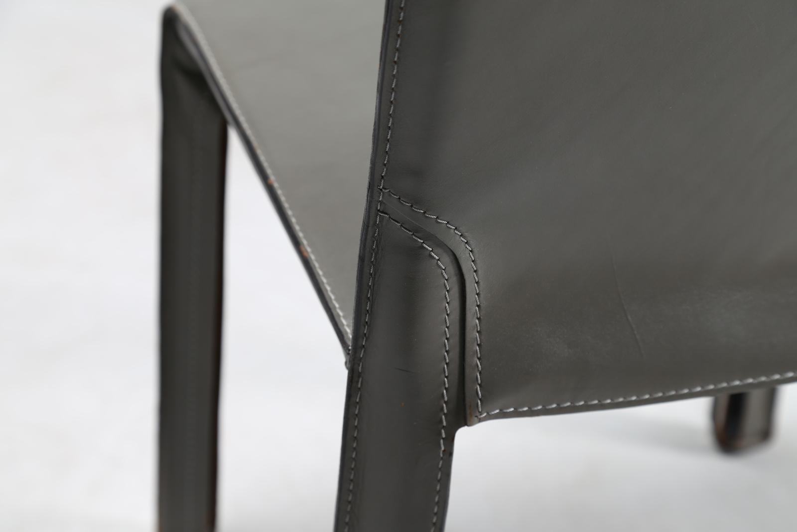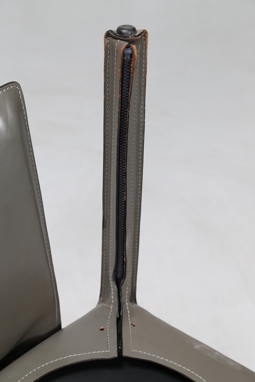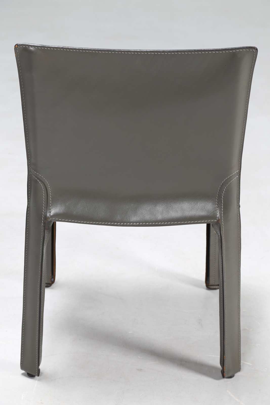 BELLINI MARIO (n. 1935) Six steel and plastic chairs, covered by hide, mod. Cab for Cassina, 70’s.