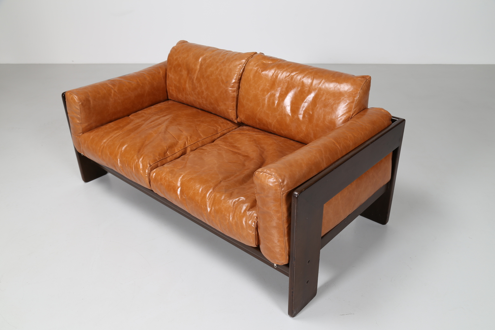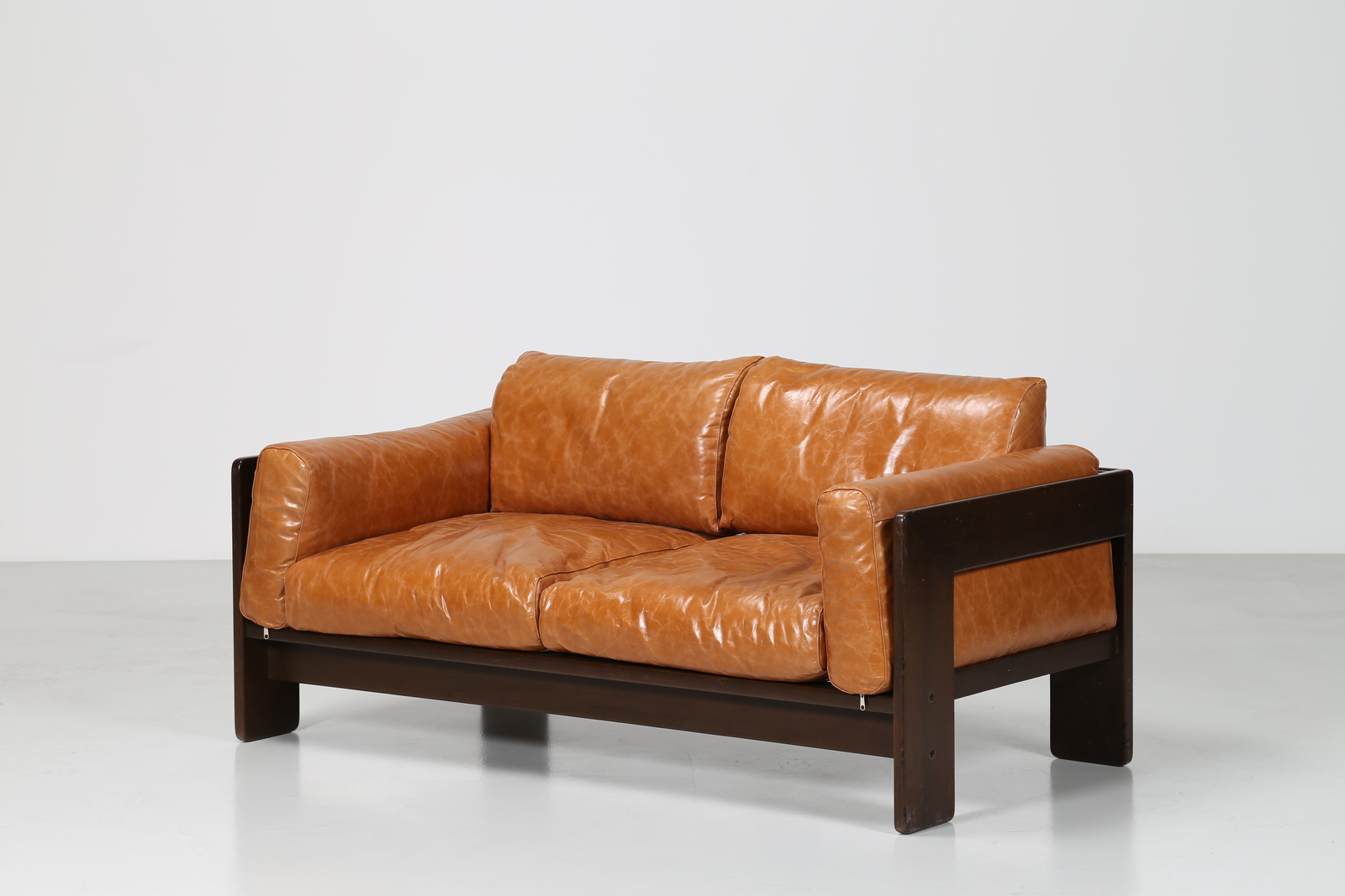 SCARPA AFRA & TOBIA Divano in palissandro e pelle, mod. Bastiano, per Gavina...