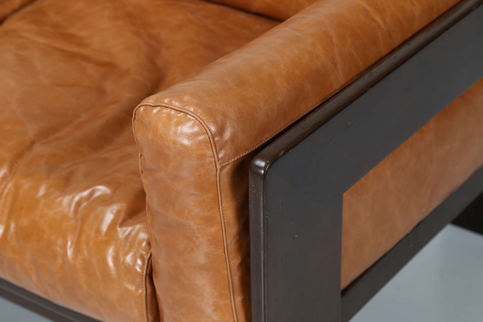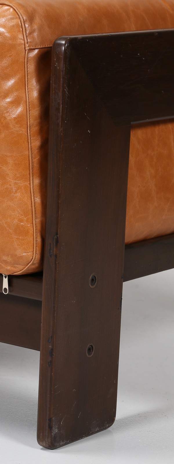 SCARPA AFRA & TOBIA Divano in palissandro e pelle, mod. Bastiano, per Gavina anni 60. -. Cm 151,00 x 70,00 x 79,00.
