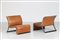 INTROINI VITTORIO Coppia di poltrone in metallo cromato e pelle, per Saporiti...