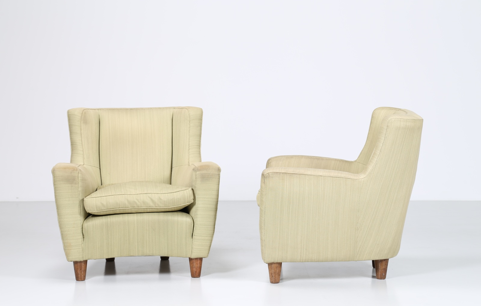 TEMPESTINI MAURIZIO (1908 - 1960) Attrib. Coppia poltrone in legno e tessuto, anni 40