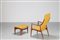 PETER HVIDT E ORLA MØLGAARD-NIELSEN Poltrona con pouf in rovere braccioli in...