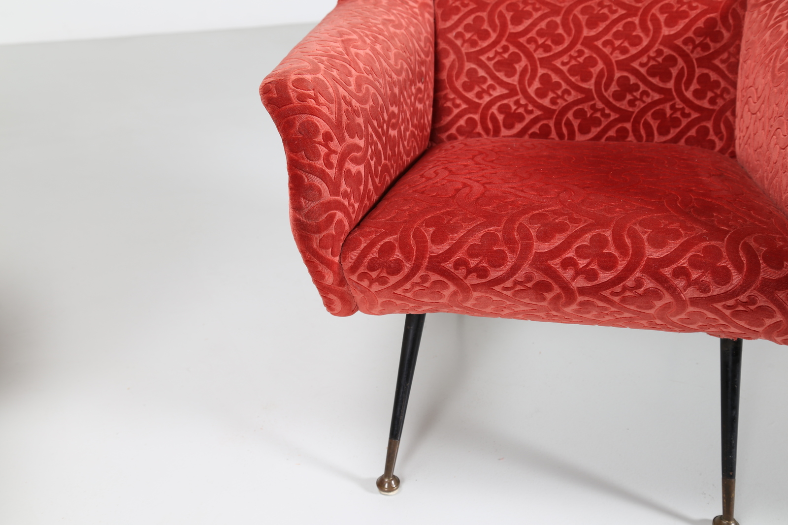 RADICE GIGI Coppia poltrone in metallo laccato, ottone e tessuto per Minotti anni 50. -. Cm 70,00 x 80,00 x 76,00.