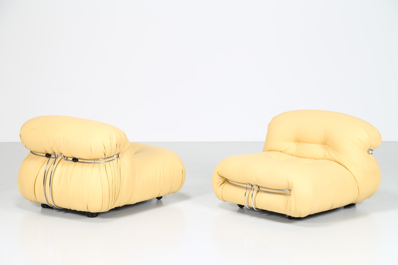 SCARPA TOBIA (n. 1935) Coppia di poltrone in skai e metallo cromato mod. Soriana per Cassina anni 60. -. Cm 84,00 x 65,00 x 89,00.