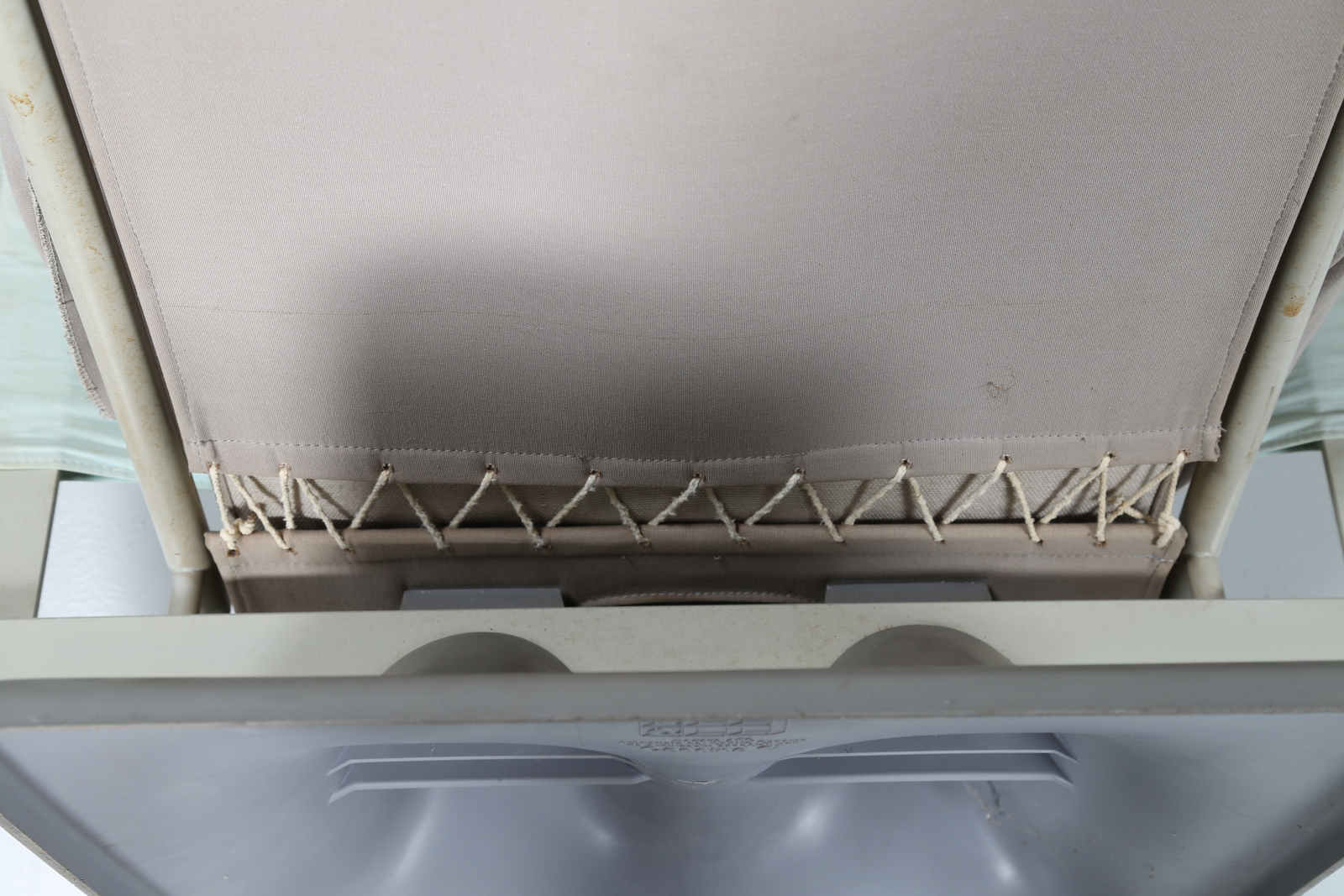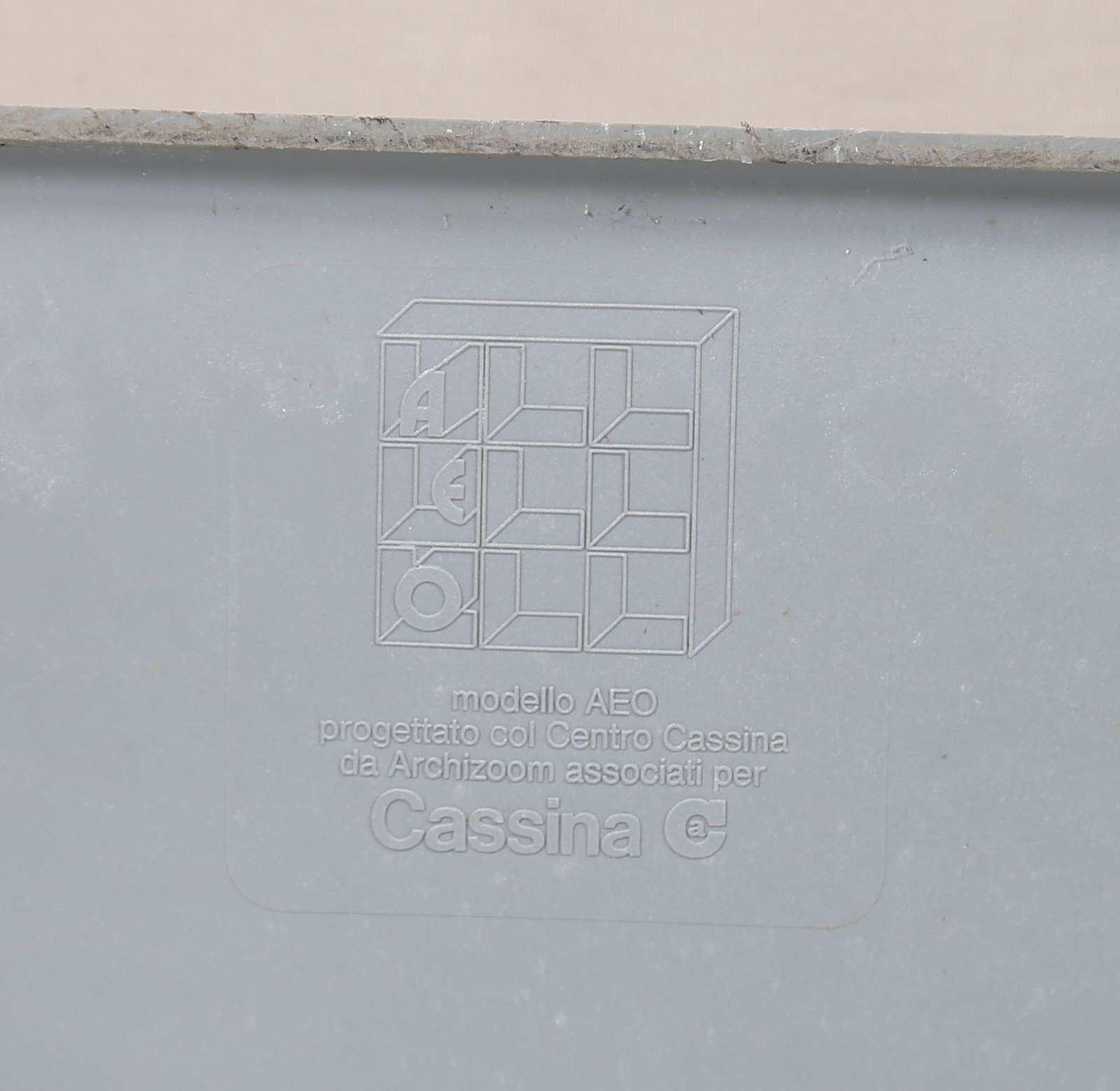 DEGANELLO PAOLO (n. 1940) Pair of armchairs with painted steel structure, plastic base, woven covering, mod. 650 AEO, for Cassina, 70’s.