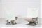 DEGANELLO PAOLO (n. 1940) Coppia di poltrone con struttura in acciaio...