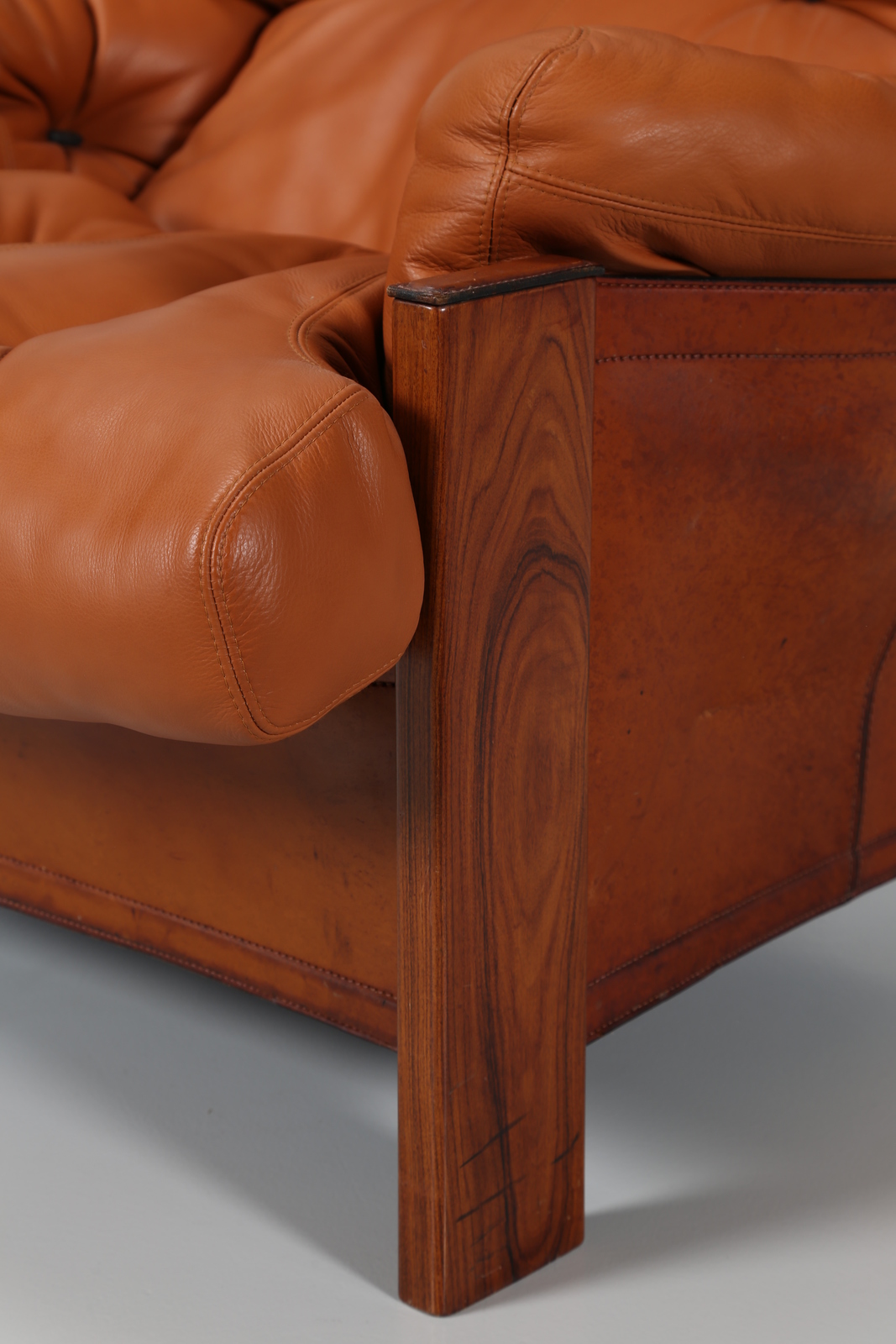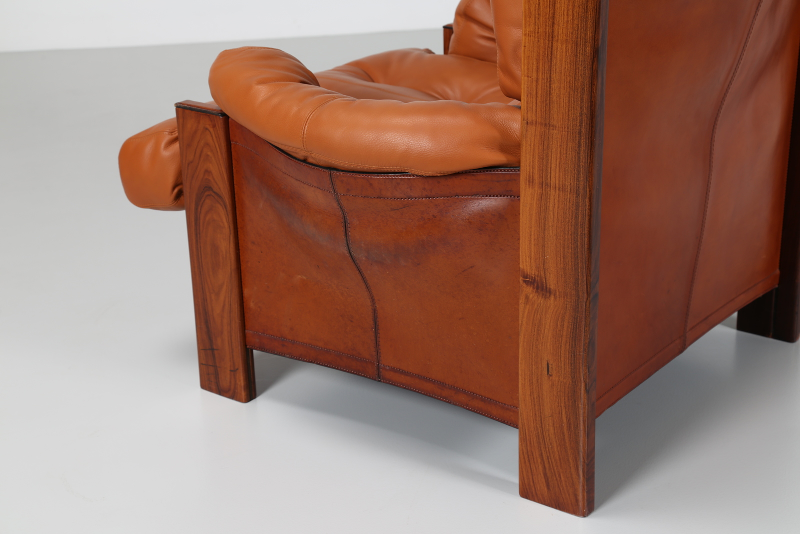 SCARPA AFRA & TOBIA Poltrona in noce pelle e cuoio, Bergere, Artona Collection, per Maxalto 1975. -. Cm 99,00 x 93,00 x 103,00.