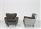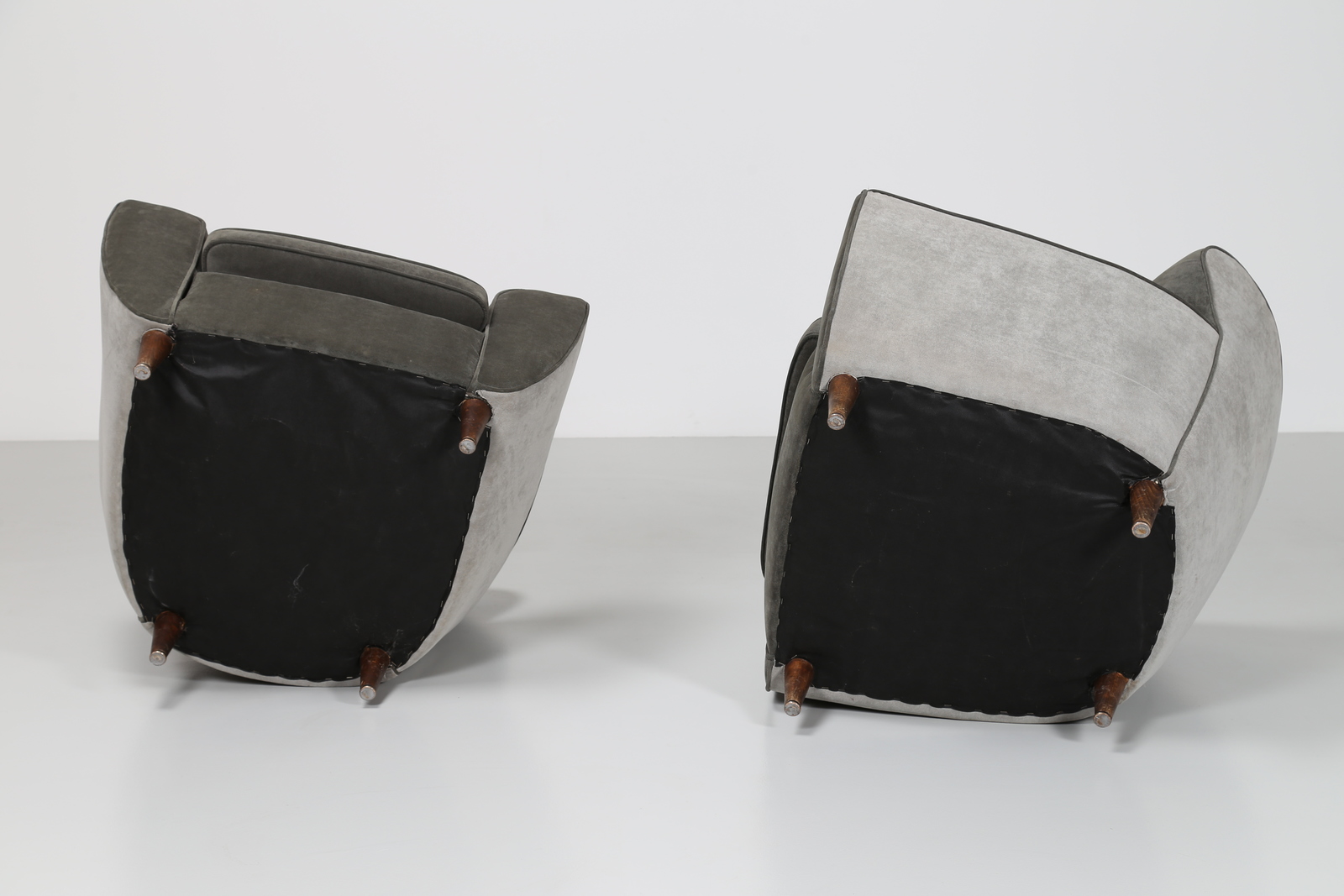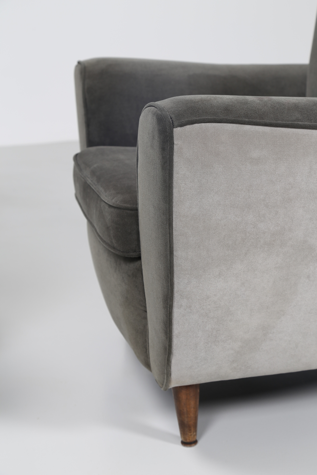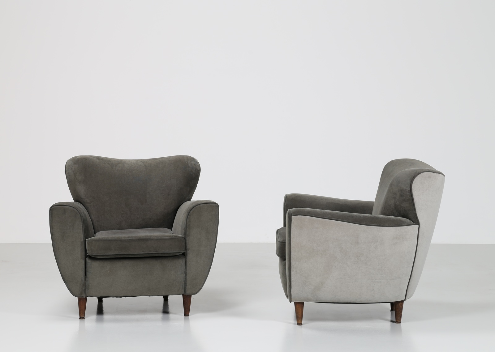 BORSANI OSVALDO (1911 - 1985) Attrib. Coppia di poltrone in legno e tessuto, anni 50. -. Cm 89,00 x 83,00 x 90,00.