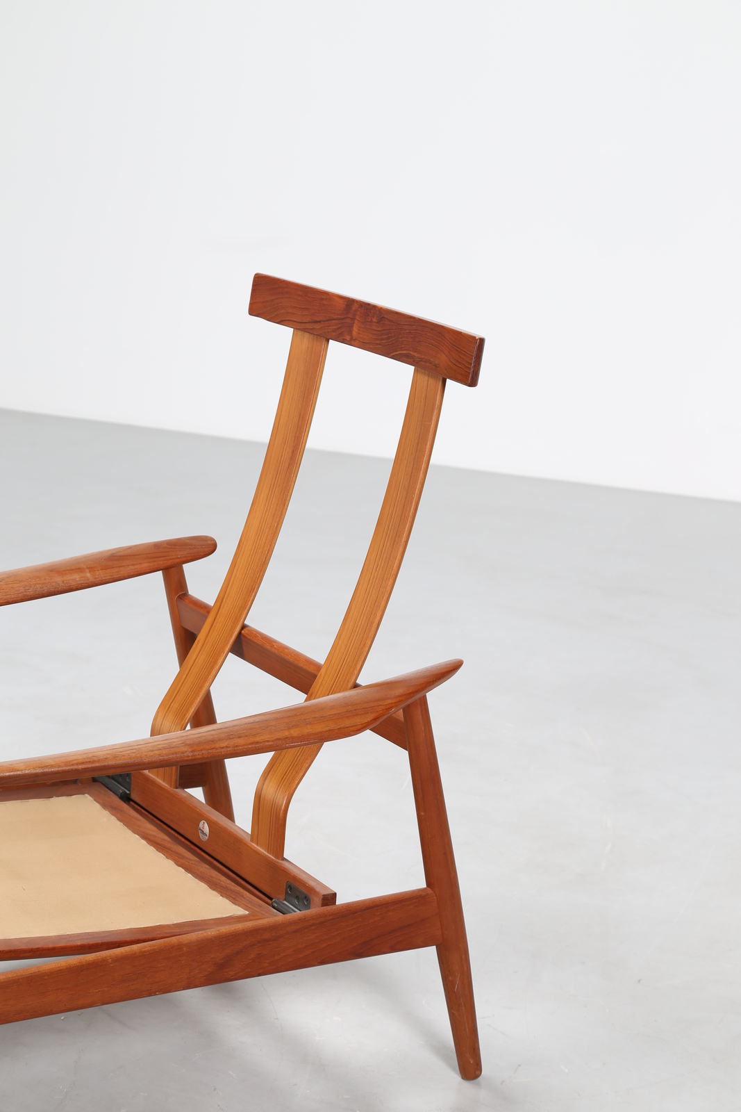 VODDER ARNE Poltrona relax reclinabile, in teak e tessuto originale, Mod. 164...
