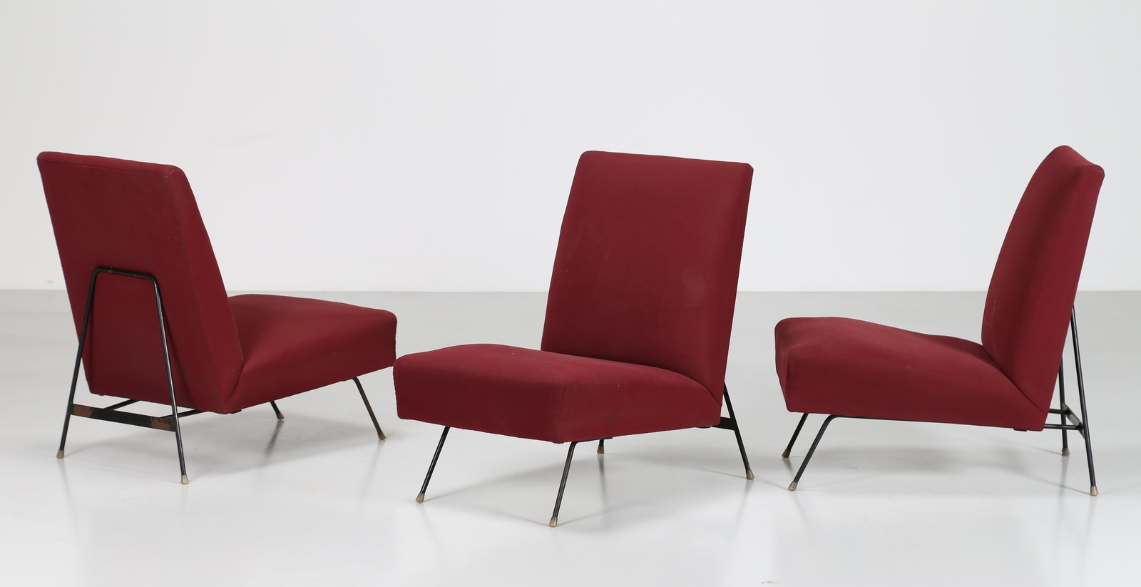 FRANCHIONI MARIO Tre poltroncine in metallo laccato e tessuto, per Framar, anni 50. -. Cm 54,00 x 77,00 x 75,00.