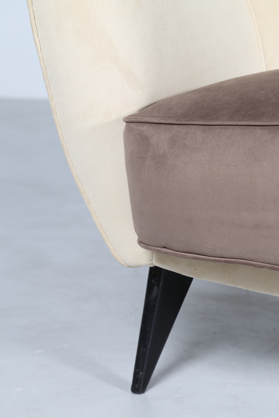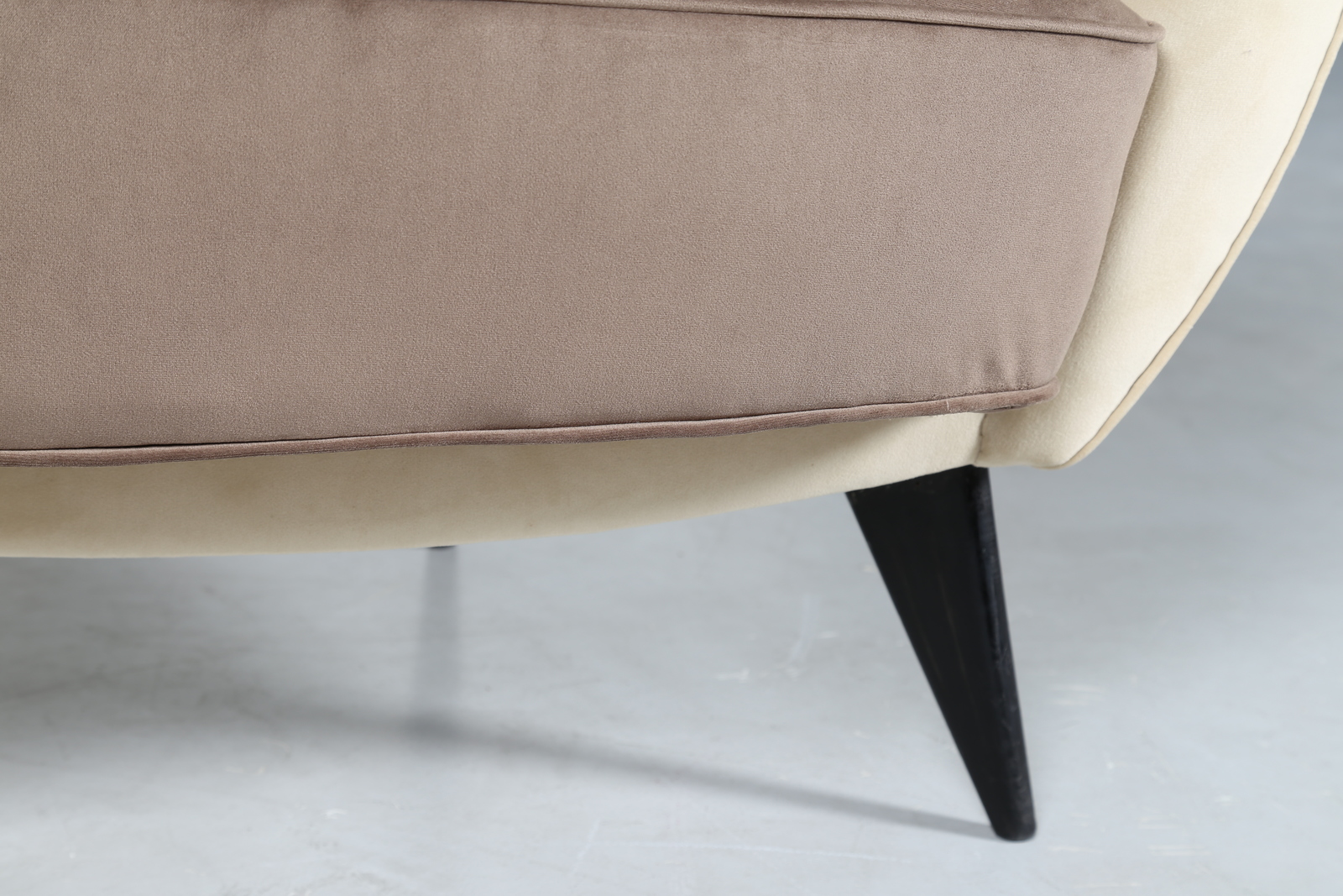 VERONESI GUGLIELMO Sofà with wood structure with padding covered by velvet, mod. Perla, for Isa, 50’s. Literature; Domus num. 247, september 1952 pag. 4