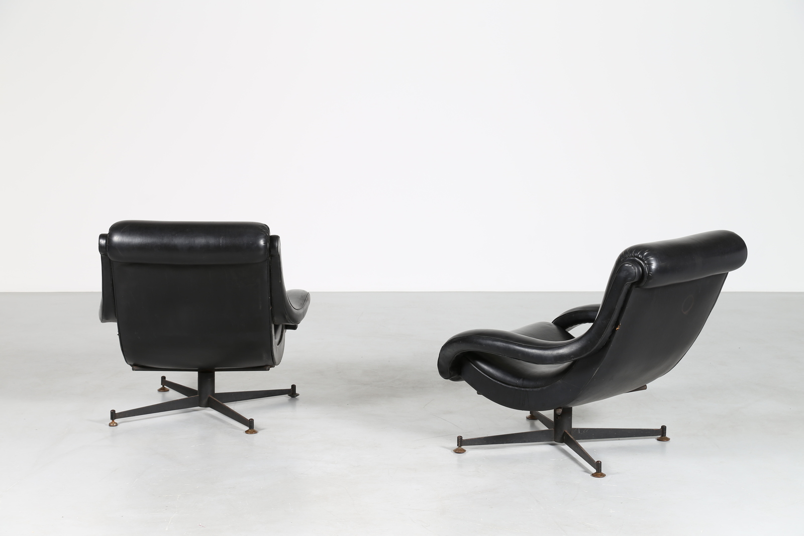 PINI NELLO Pair of armchairs covered by fake leather, metal and brass, 60’s.