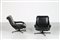 PINI NELLO Coppia di poltrone rivestite in similpelle, metallo e ottone, anni 60. -. Cm 84,00 x 86,00 x 102,00.