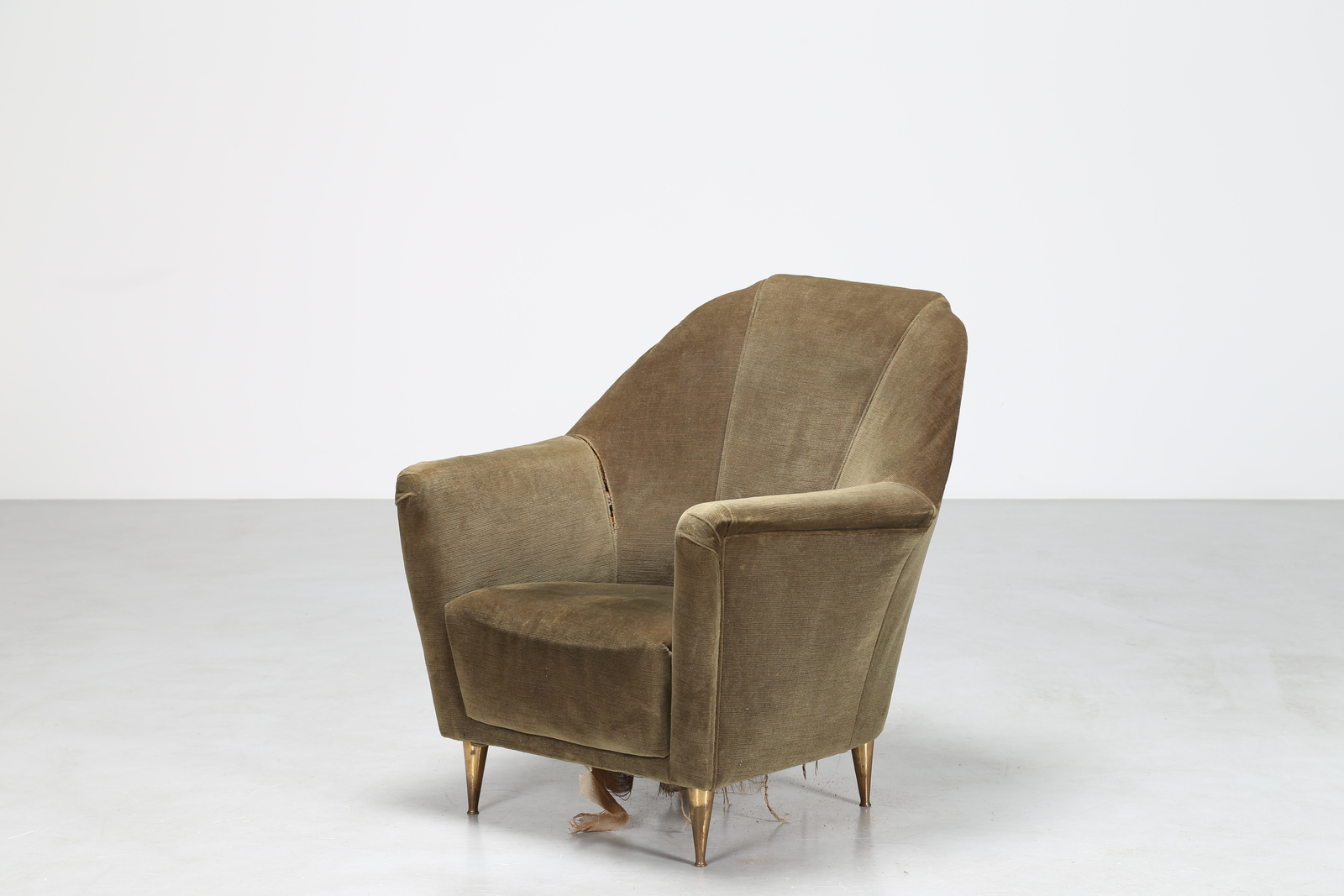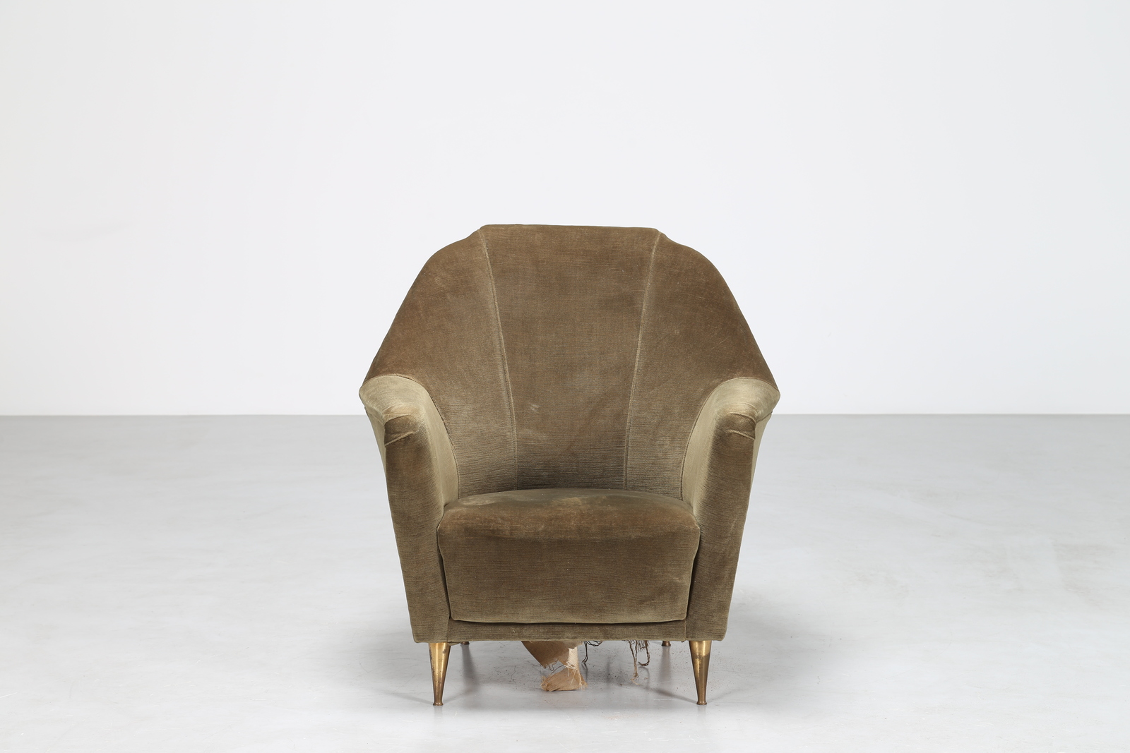 PARISI ICO (1916 - 1996) Poltroncina con piedini in ottone in legno e velluto originale, per Ariberto Colombo, 1951. Pubblicazioni; Ico Parisi Design, Catalogo Ragionato, Silvana Editoriale a cura di Roberta Lietti, pag. 250, 1951.4C.