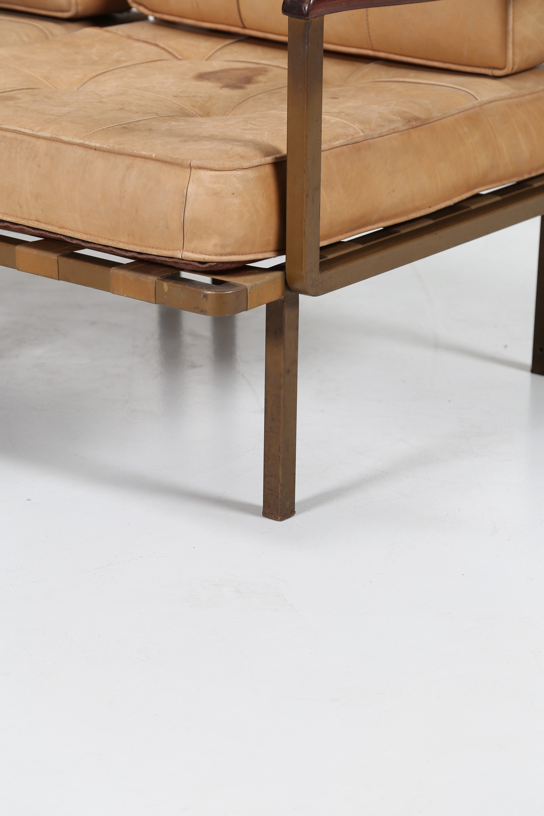 BORSANI OSVALDO (1911 - 1985) Divano in metallo verniciato e legno lucidato, rivestito in pelle originale, mod. P24 per Tecno 1961. Pubblicazioni; Domus num. 386 gennaio 1962 pag. 45;