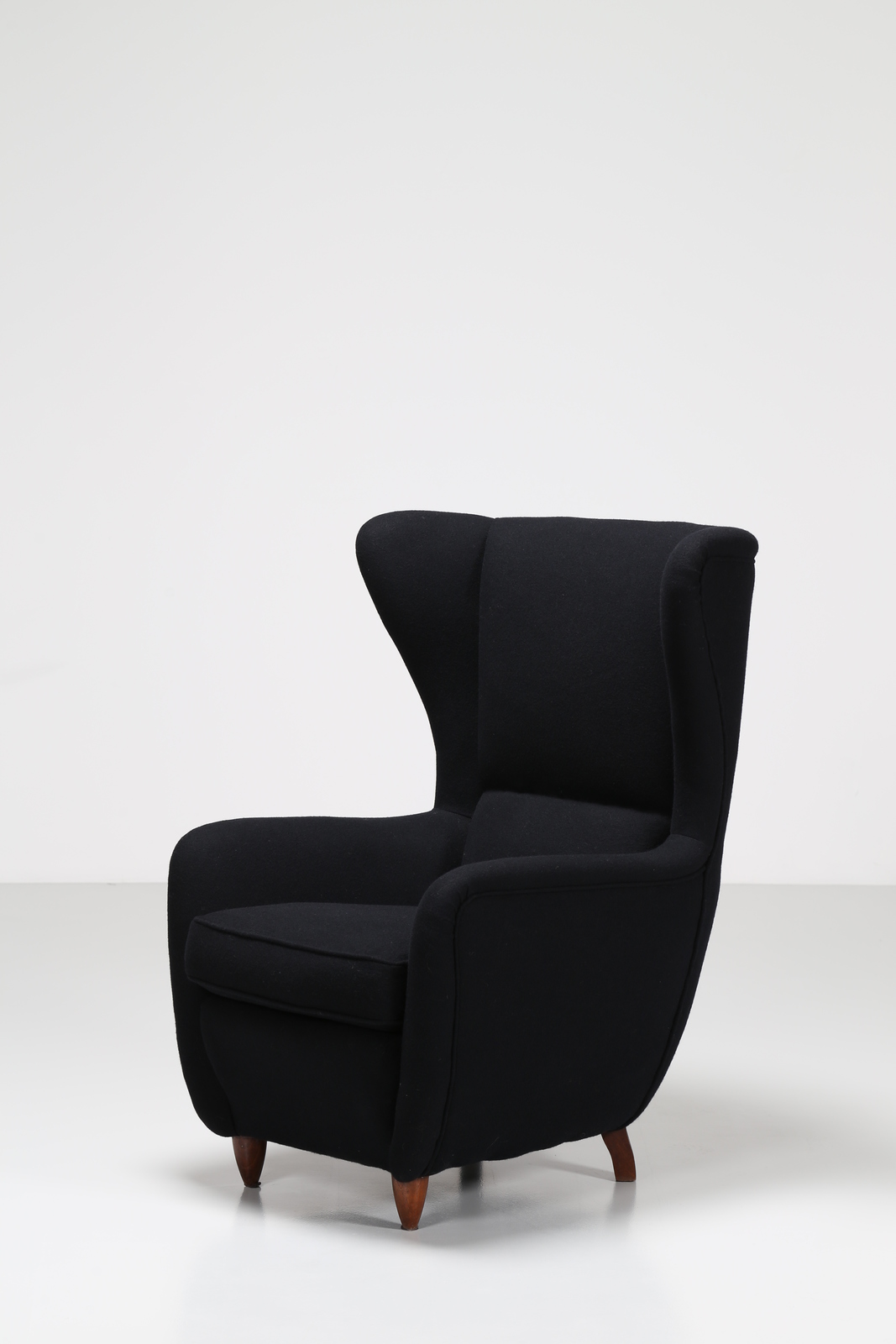 ULRICH GUGLIELMO Poltrona in legno e tessuto, anni 50. -. Cm 85,00 x 111,00 x 79,00.