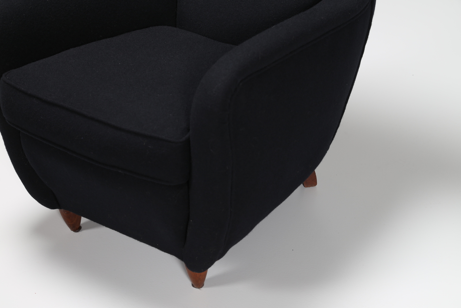 ULRICH GUGLIELMO Poltrona in legno e tessuto, anni 50. -. Cm 85,00 x 111,00 x...