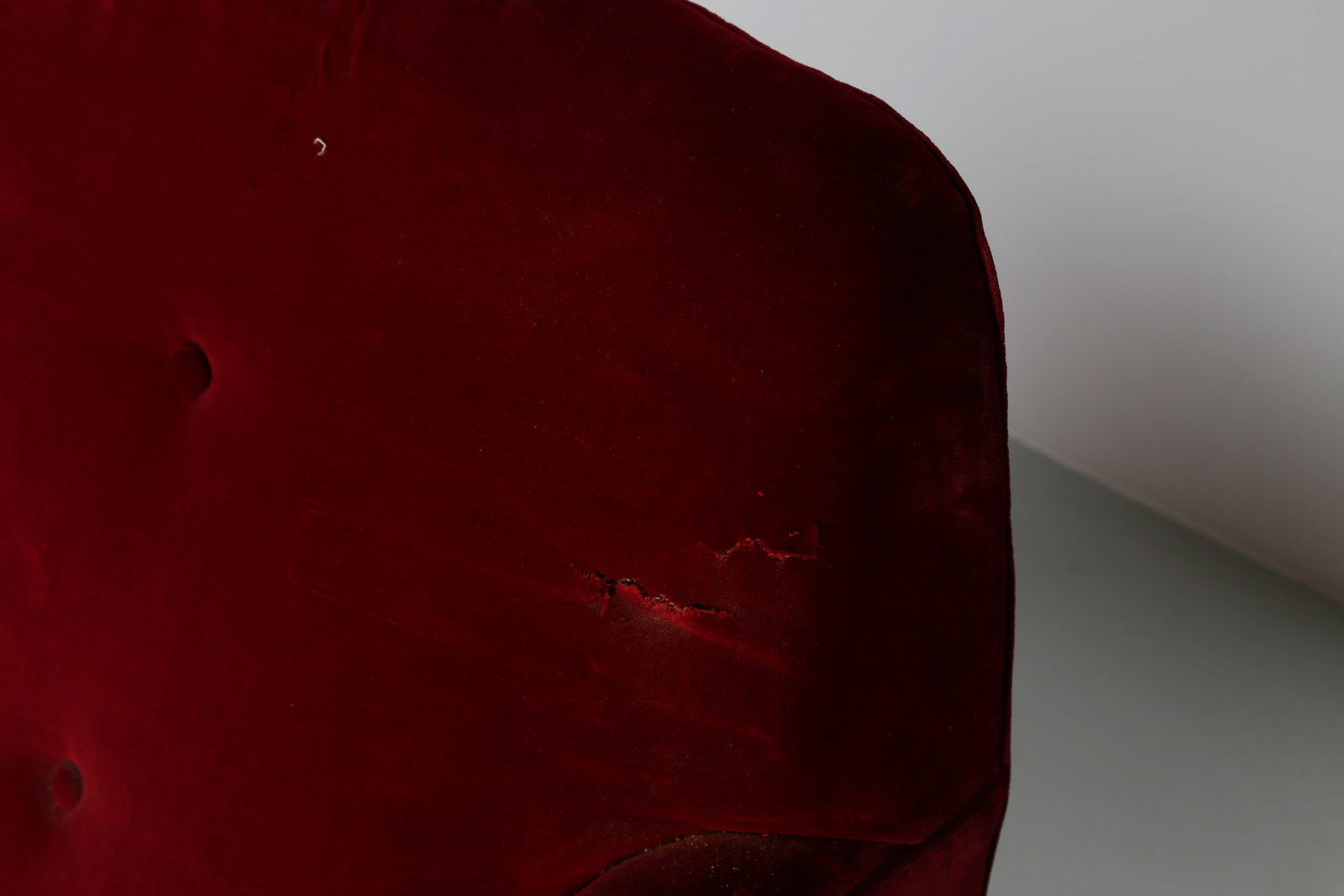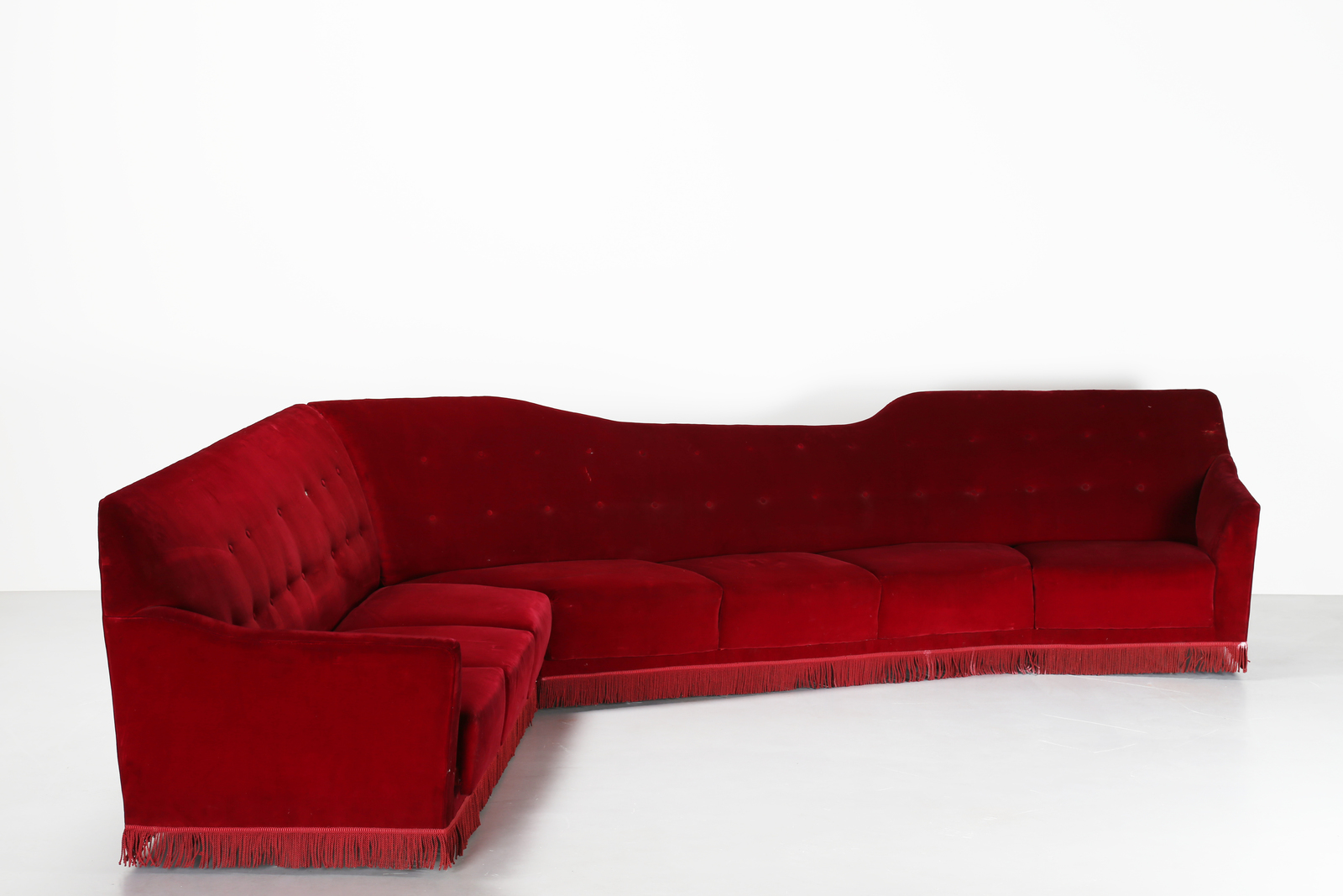 BEGA MELCHIORRE (1898 - 1976) Grande divano ad angolo in legno e tessuto orginale facente parte dell'arredo di una villa anch'essa progettata dall'architetto nel 1948 sui colli bolognesi. . Cm 350,00 x 94,00 x 320,00.
