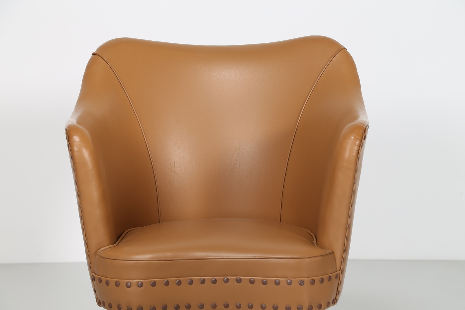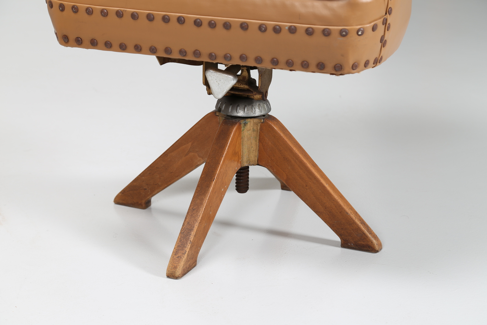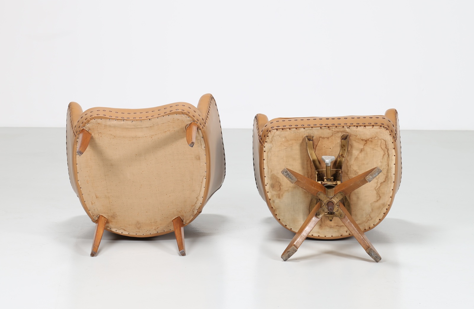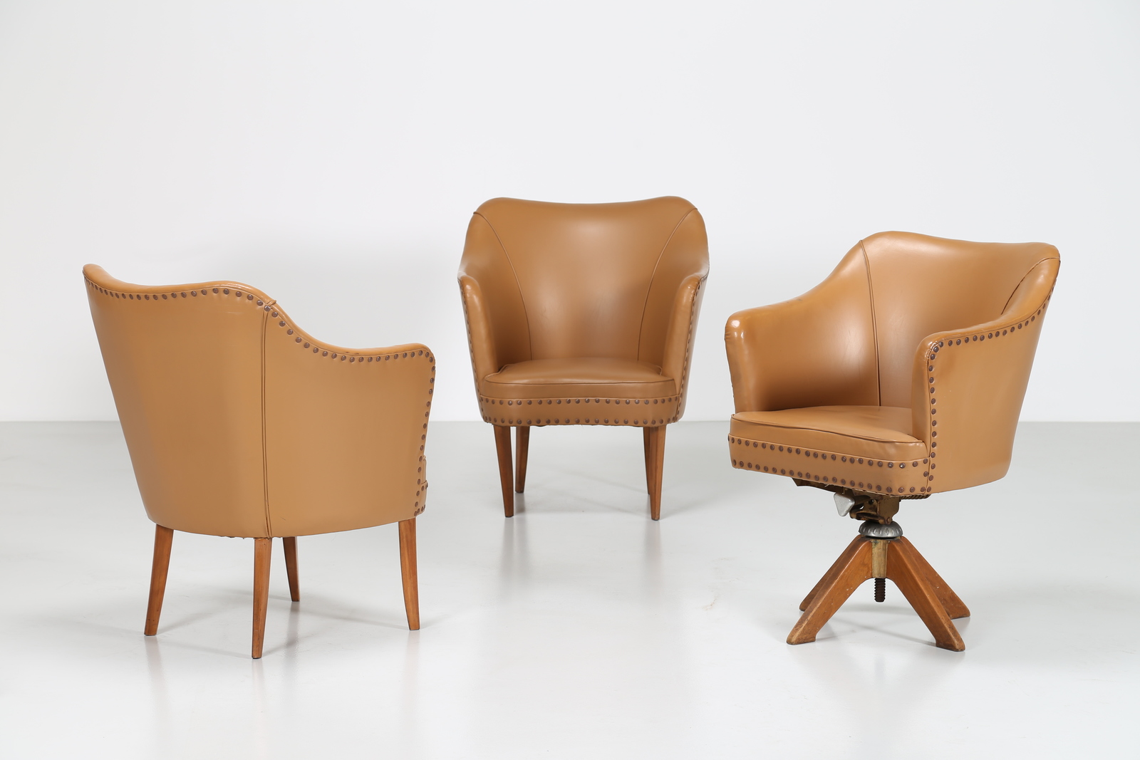 CASA E GIARDINO Tre poltrone da ufficio in noce e sky, per Casa e Giardino anni 40. -. Cm 60,00 x 86,00 x 60,00. Due poltrone misura: 81 x 67 x 67