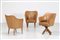 CASA E GIARDINO Tre poltrone da ufficio in noce e sky, per Casa e Giardino anni 40. -. Cm 60,00 x 86,00 x 60,00. Due poltrone misura: 81 x 67 x 67