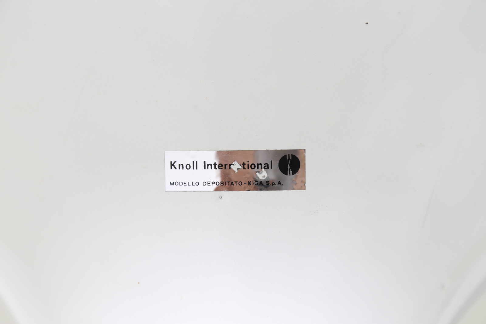 SAARINEN EERO Tavolo ovale in vetroresina base in fusione d’alluminio, Piano in legno laccato, mod. Tulip, per Knoll Internation anni 70. Etichetta originale presente. Pubblicazioni; Catalogo originale Knoll; Domus num. 337 dicembre 1957 pag. 48/49.