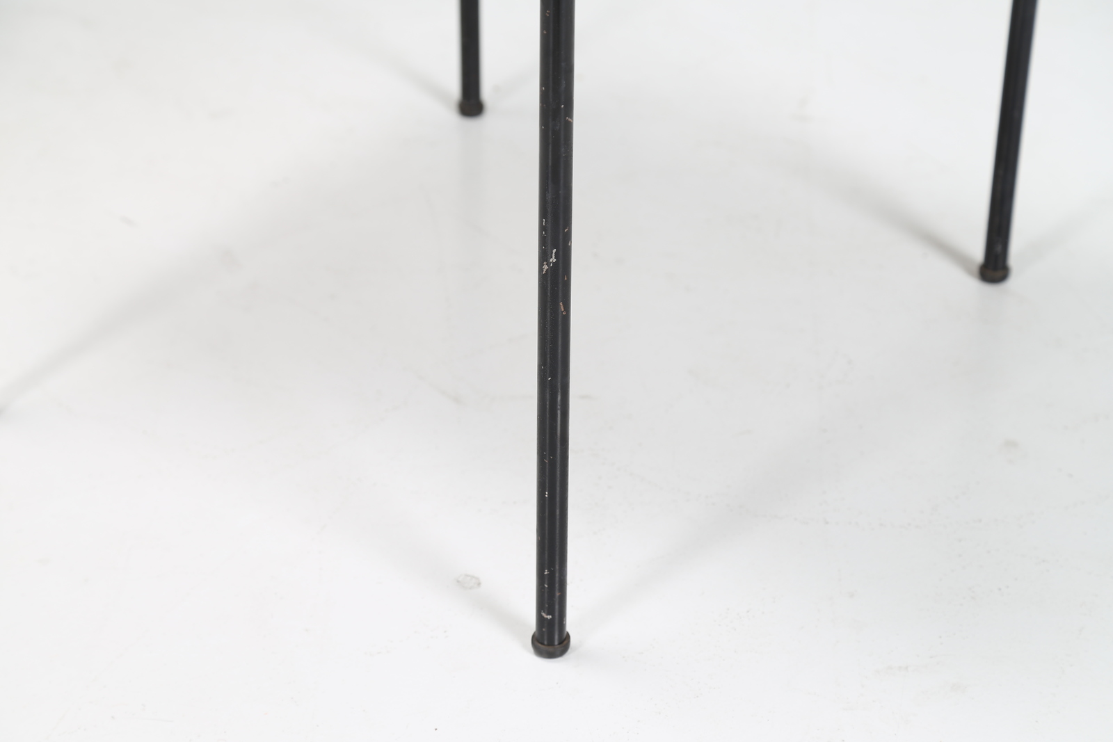 MANIFATTURA ITALIANA Wood and metal little table with glass level with incisions, 50’s.