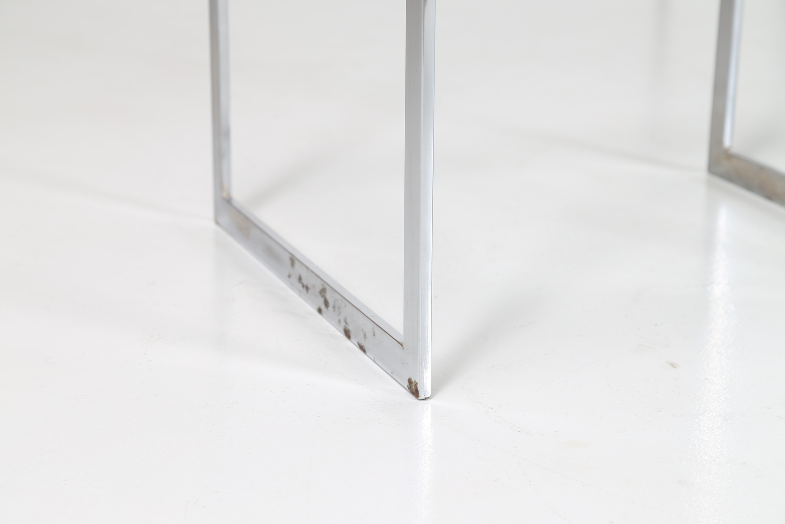 MANIFATTURA ITALIANA Chromed metal and glass stuckable little tables.