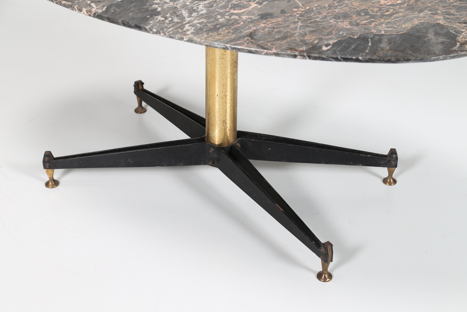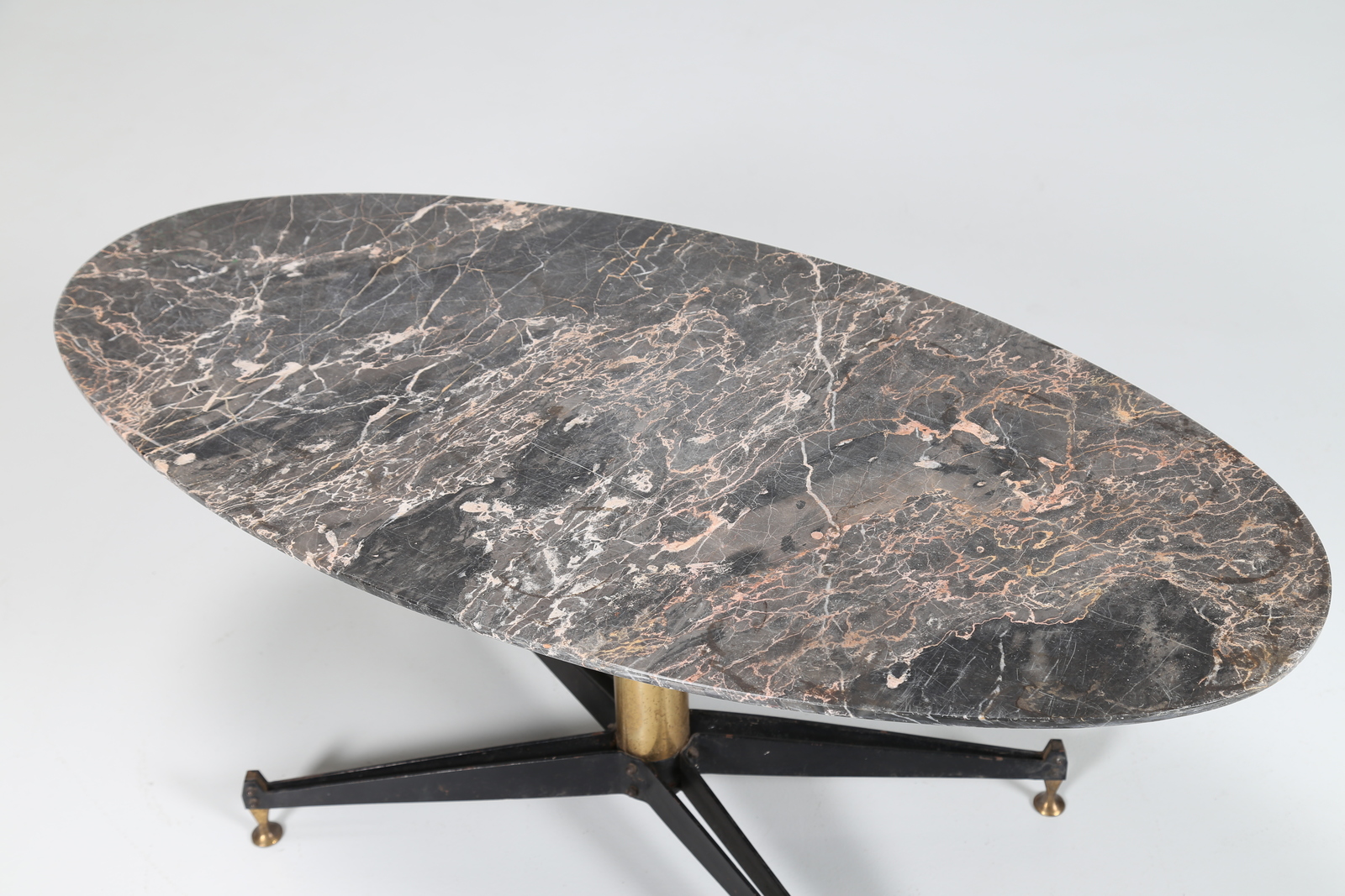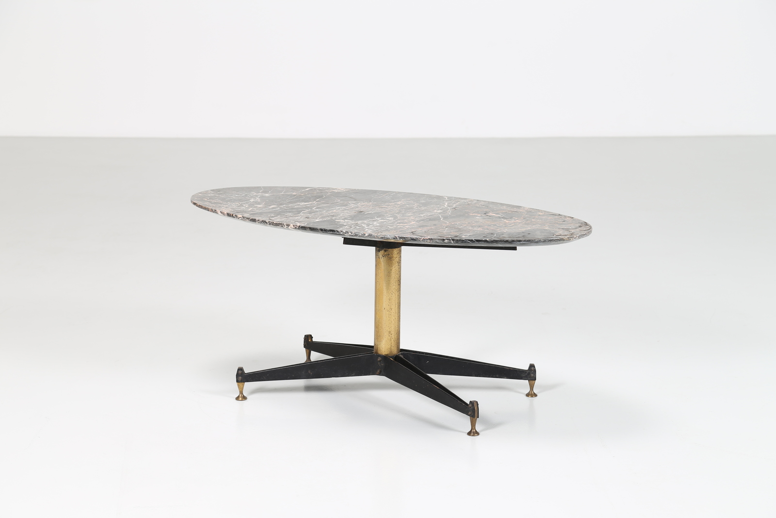 MANIFATTURA ITALIANA Tavolino in metallo laccato ottone e piano in marmo, anni 50. -. Cm 98,50 x 44,00 x 49,00.