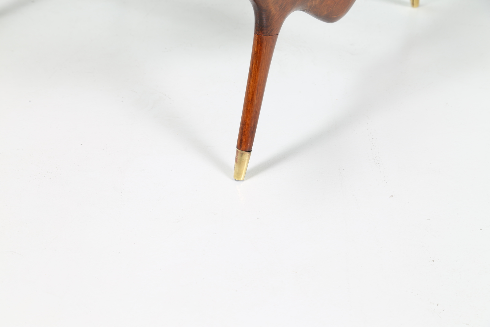 LACCA CESARE Beech magazine rack little table with brass tip and details and crystal level, 50’s.