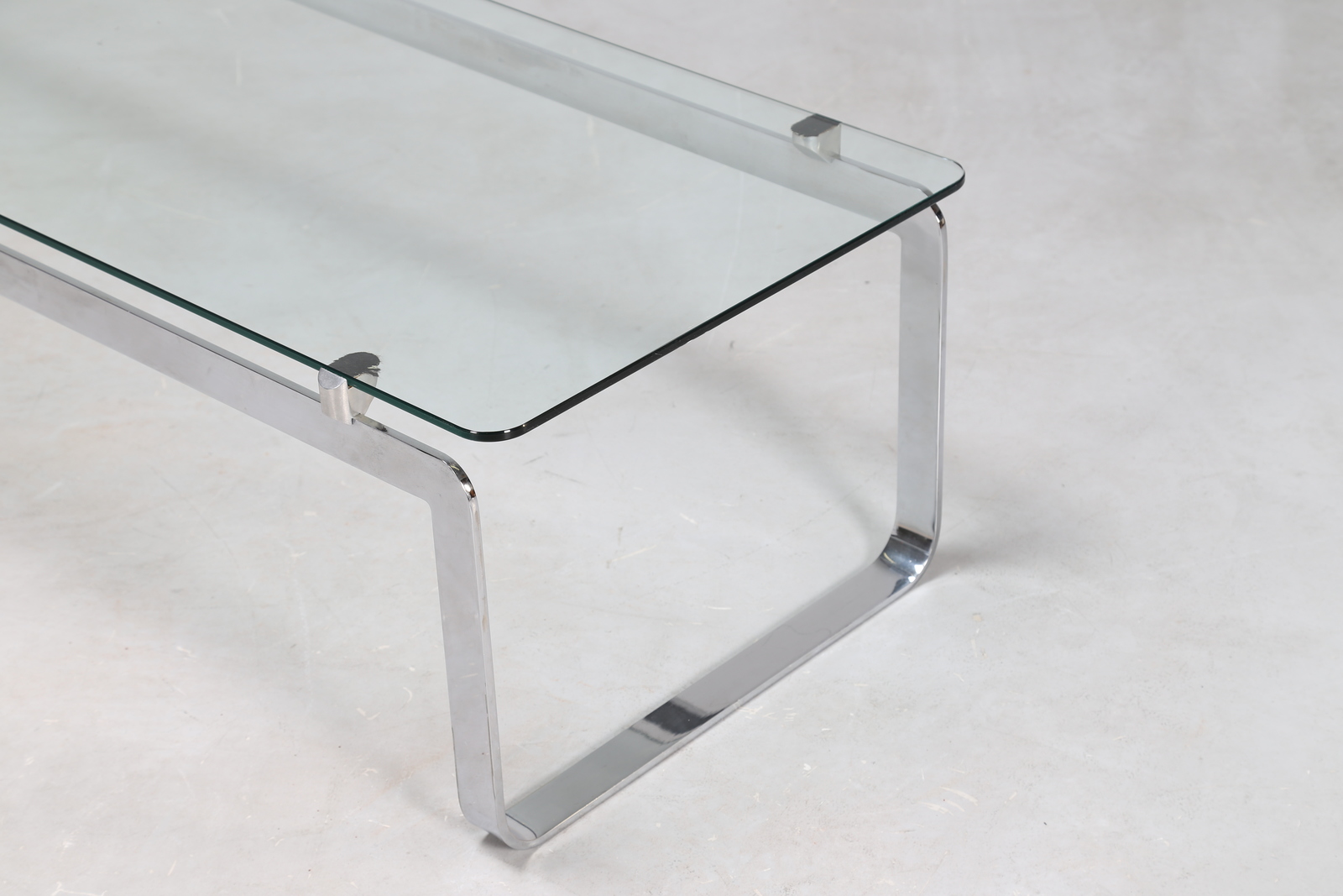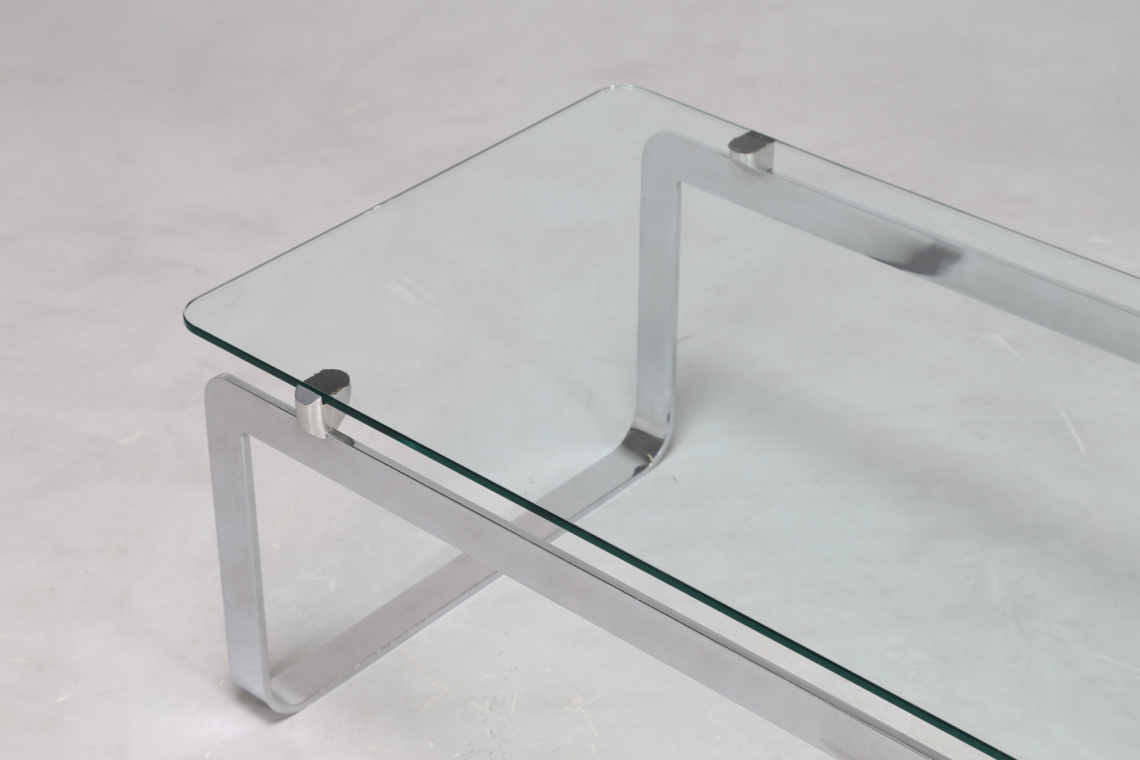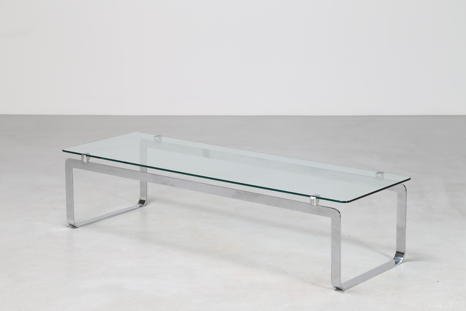INTROINI VITTORIO Tavolino da salotto, in metallo cromato e cristallo molato, Proposals anni '60. . -. Cm 144,00 x 36,00 x 51,50.