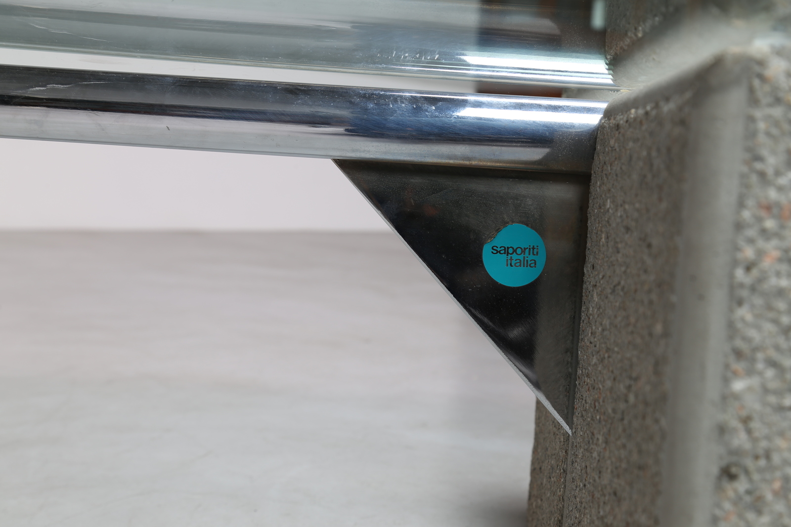 OFFREDI GIOVANNI (n. 1927) Coffee little table with cement and chromed steelbase, crystal level, for Saporiti, 70’s.