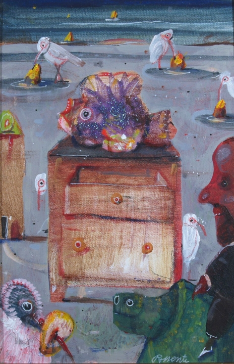 POSSENTI ANTONIO (Lucca 1933) "Figura con pesci" Olio su cartone telato cm....