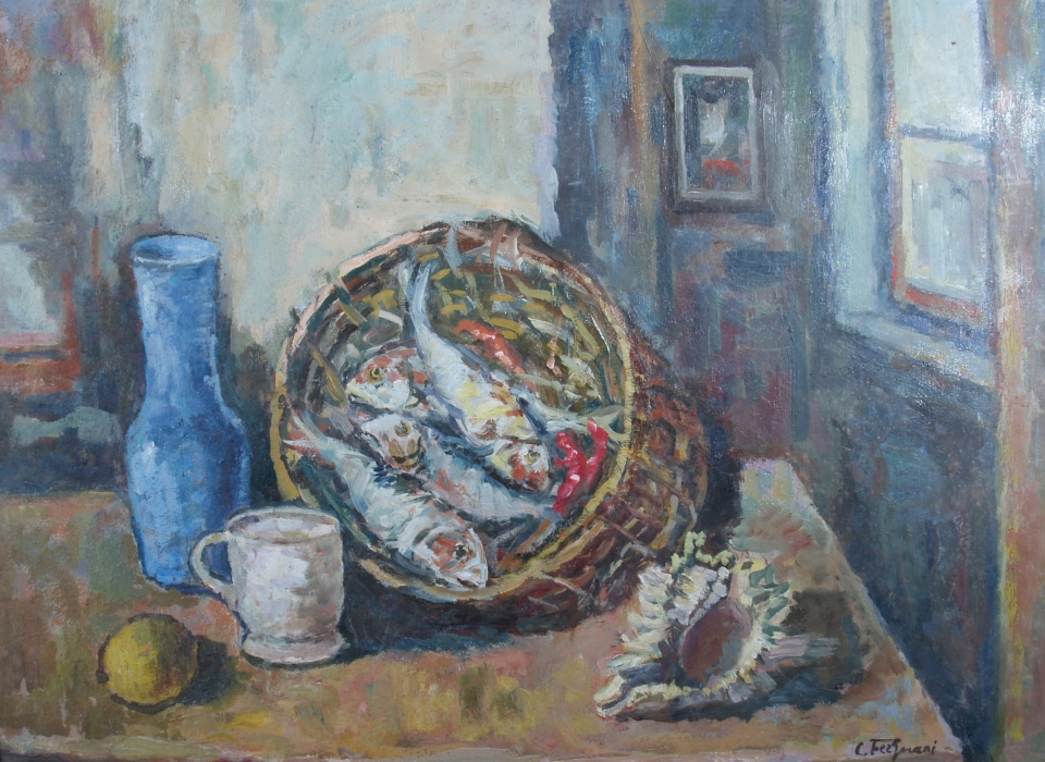 "Natura morta con pesci" 1950