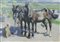 Wilhelm Wollmann 1872-1931 "Cavalli in riposo" cm. 35x50 - olio su cartone...
