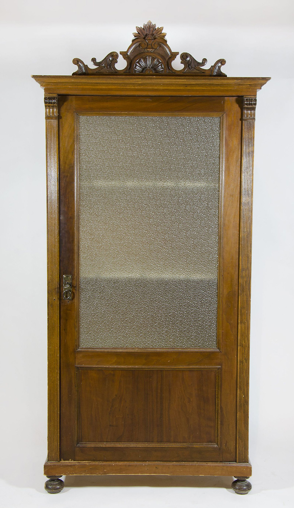 Armadio in legno con anta a vetro. cm. 185x91x46.