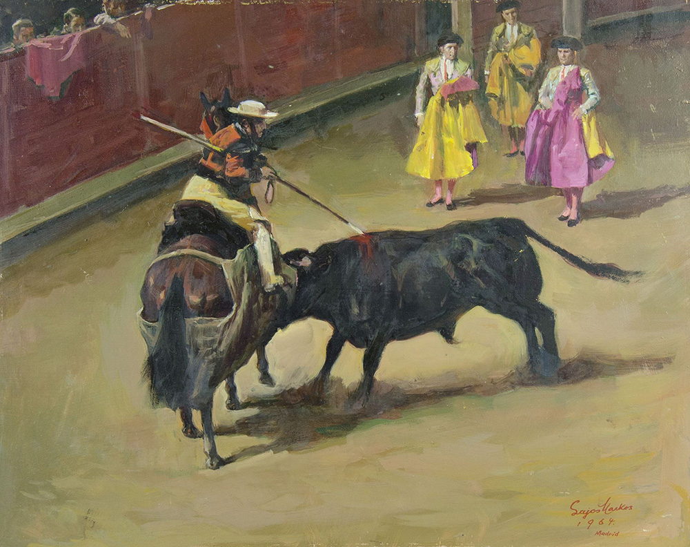 Lajos Markos 1917-1993 "Il torero" cm. 40x50 - olio su faesite Firmato b. a d. e datato 1964.