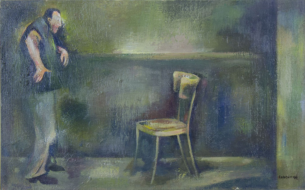 Livio Rosignano Pinguente (Pola) 1924-2015 "La baldoria è finita" cm. 25x40 - olio su cartone Firmato b. a d.