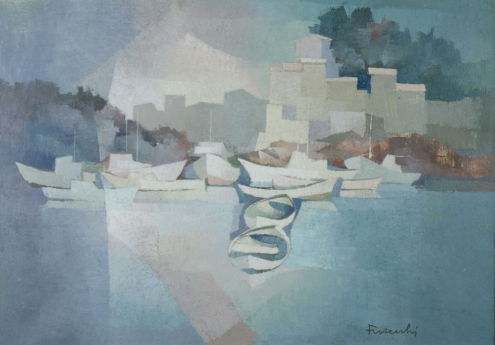Paolo Frosecchi 1924 "Marina azzurra" cm. 50x70 - olio su tela Firmato b. a d. Al retro dedica con firma dell'Artista