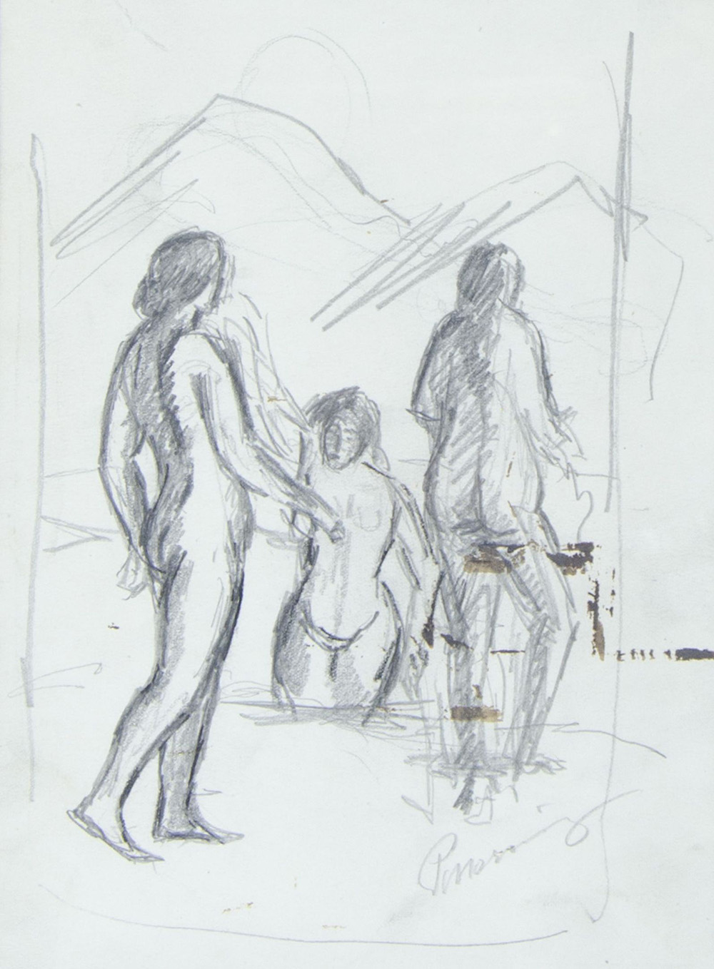 Pietro Marussig Trieste 1879-Pavia 1937 "Bagnanti" cm. 22x16 - matita grassa su carta Firmato b. a d. Al retro etichetta Galleria Torbandena Trieste. Pubbl.: catalogo "Piero Marussig 2000 disegni" a cura Emi Editrice Pavia 1988, fig. 144 pag. 51.