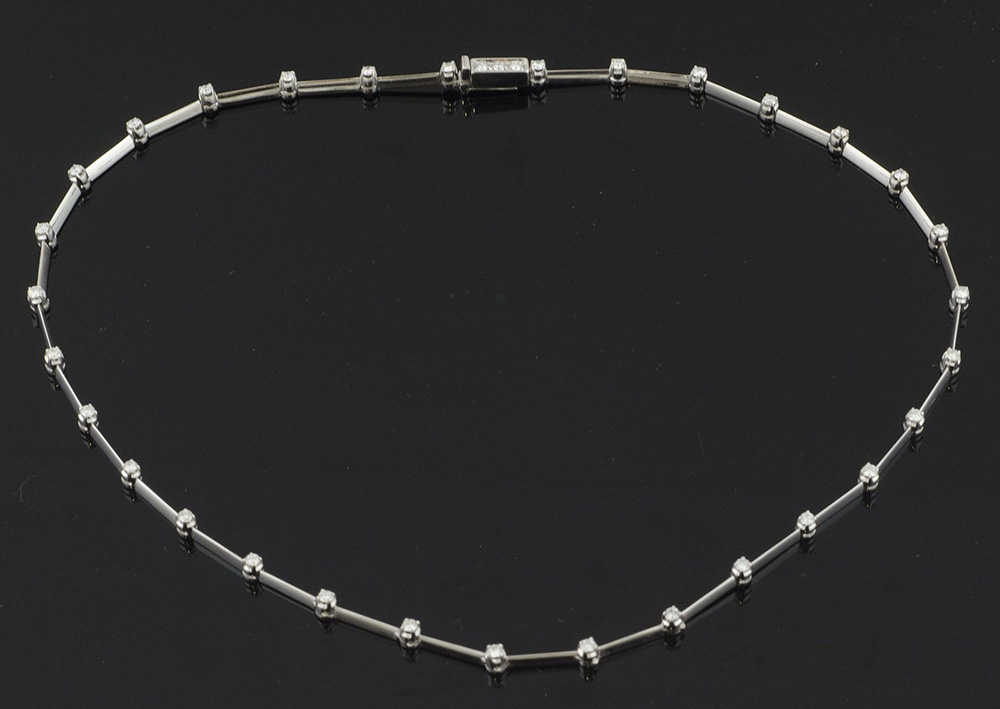 Lot 162 | Collana girocollo in oro bianco a settori intercalati da diamanti taglio...