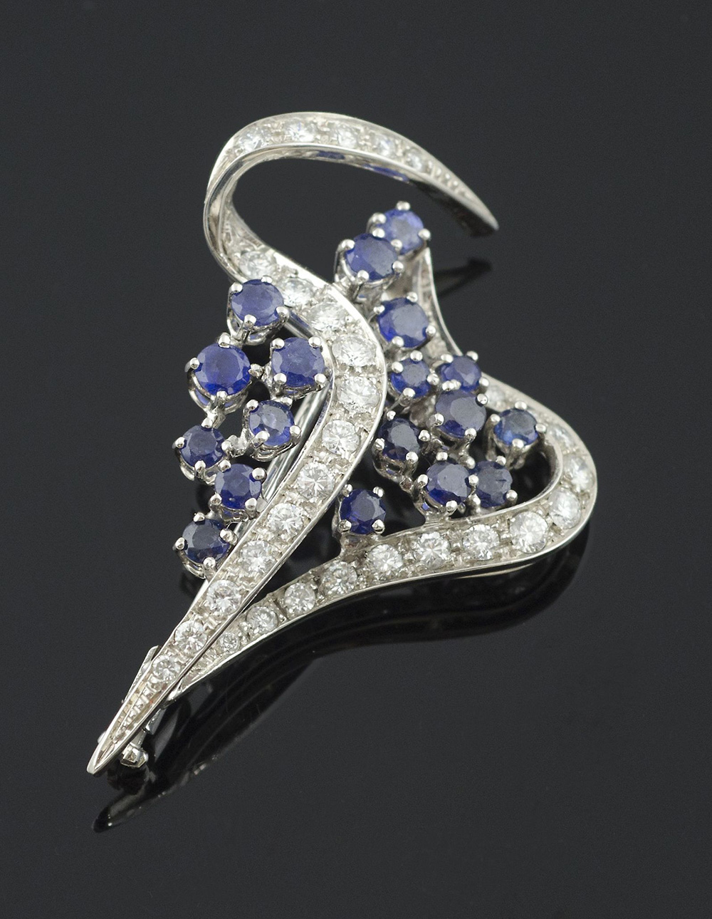 Lot 164 | Spilla in oro bianco a motivo floreale con piccoli diamanti taglio brillante...
