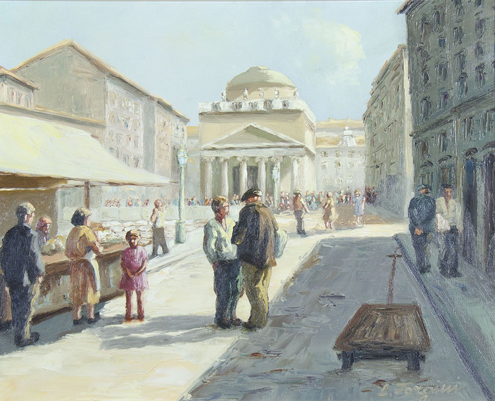 Luigi Forgini Trieste 1934 "Mercato a Sant'Antonio" cm. 40x50 - olio su tela Firmato b. a d.