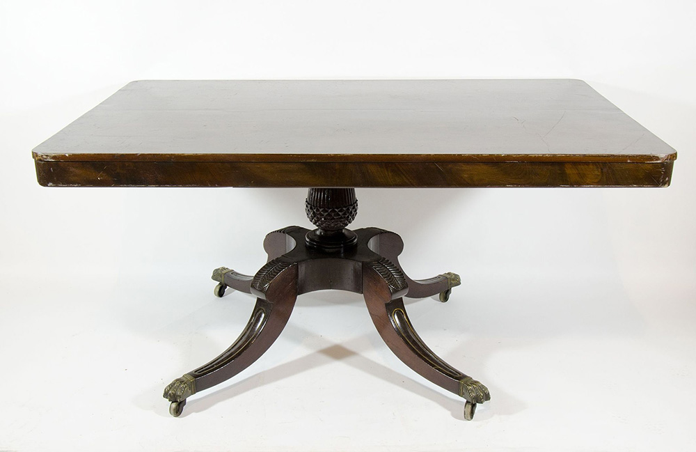 Lot 245 | Tavolo rettangolare inglese in legno su gamba ripartita a 4 piedi scolpiti....