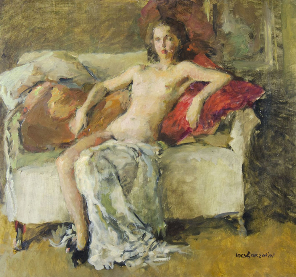Lot 250 | Ines Garzolini "Modella in poltrona" cm. 59x63 - olio su tavoletta Firmato b....