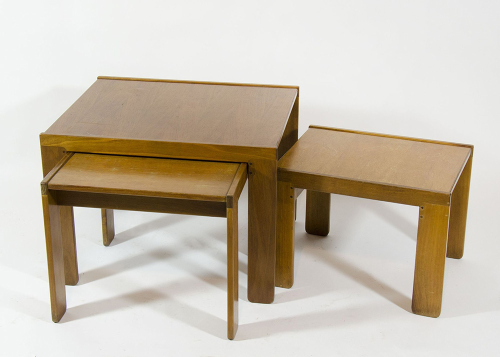 Cassina: servomuto di tre tavolini con etichetta originale in carta.