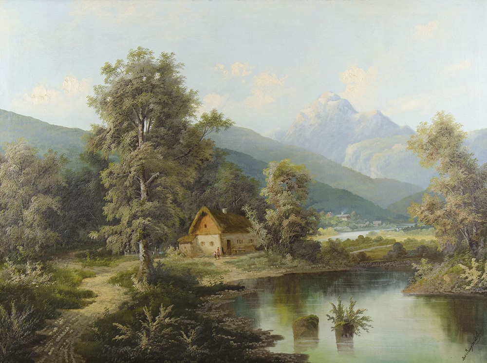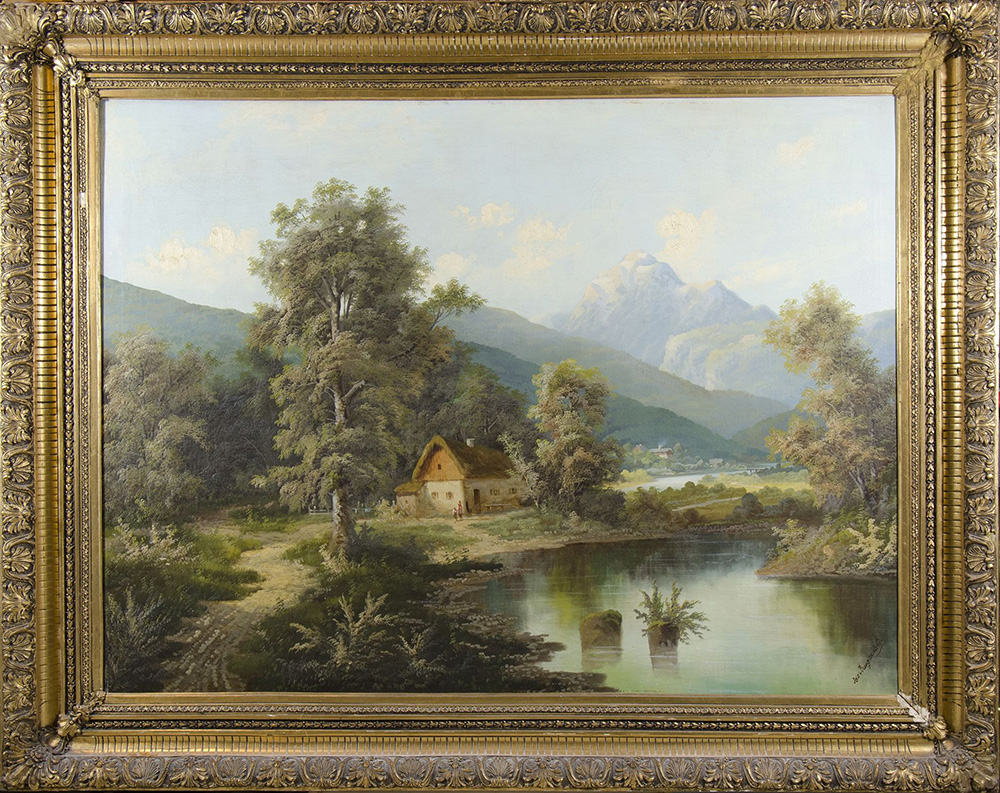 Lot 337 | Josef Burgaritzky 1836-1890 "Villaggio tra i monti" cm. 95x125 - olio su tela...