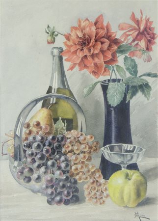 Lot 380 | Giuseppe Moro 1888-1956 "Natura morta con uva" cm. 43x31 - acquerello su...